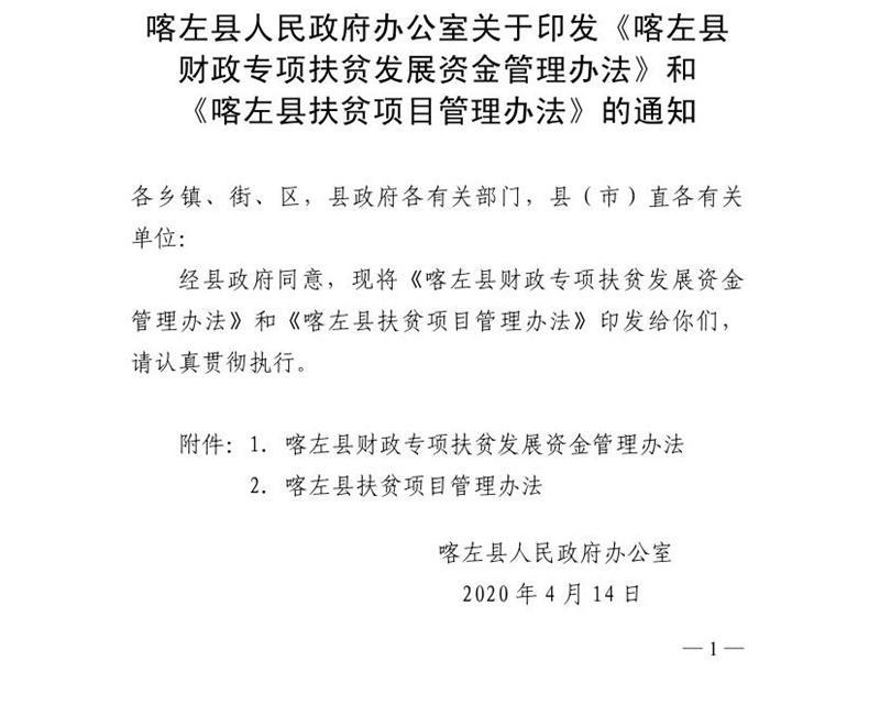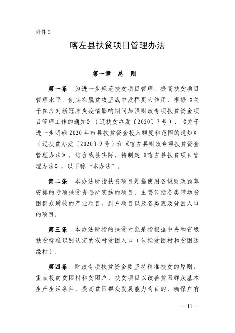 喀政办发〔2020〕12号 喀左县人民政府办公室关于印发《喀左县财政专项扶贫发展资金管理办法》和《喀左县扶贫项目管理办法》的通知