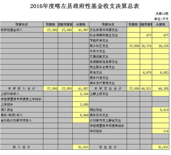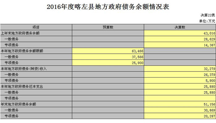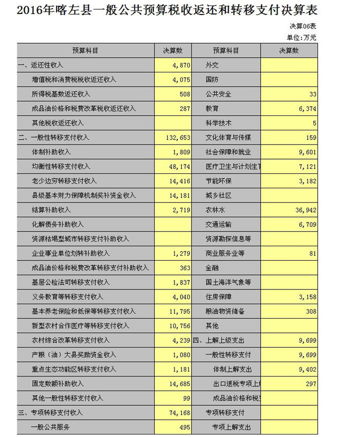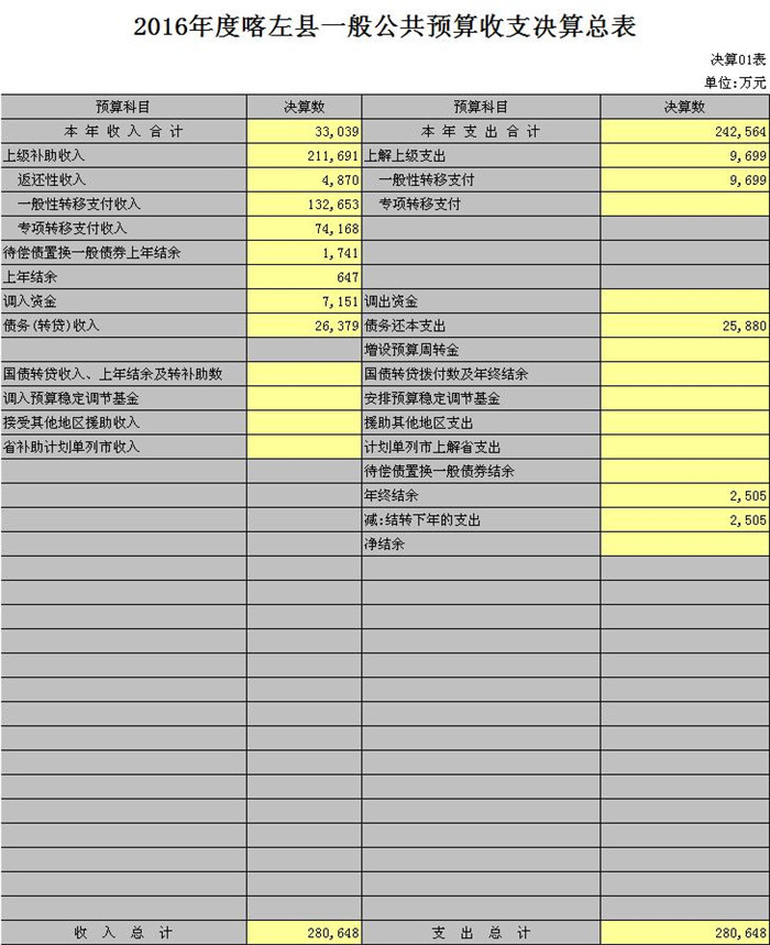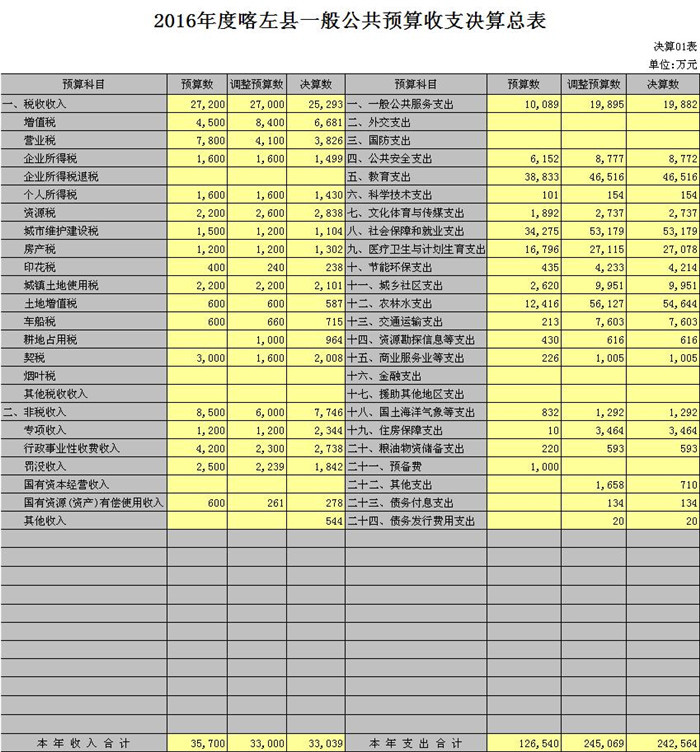喀左县2016年财政决算(草案)