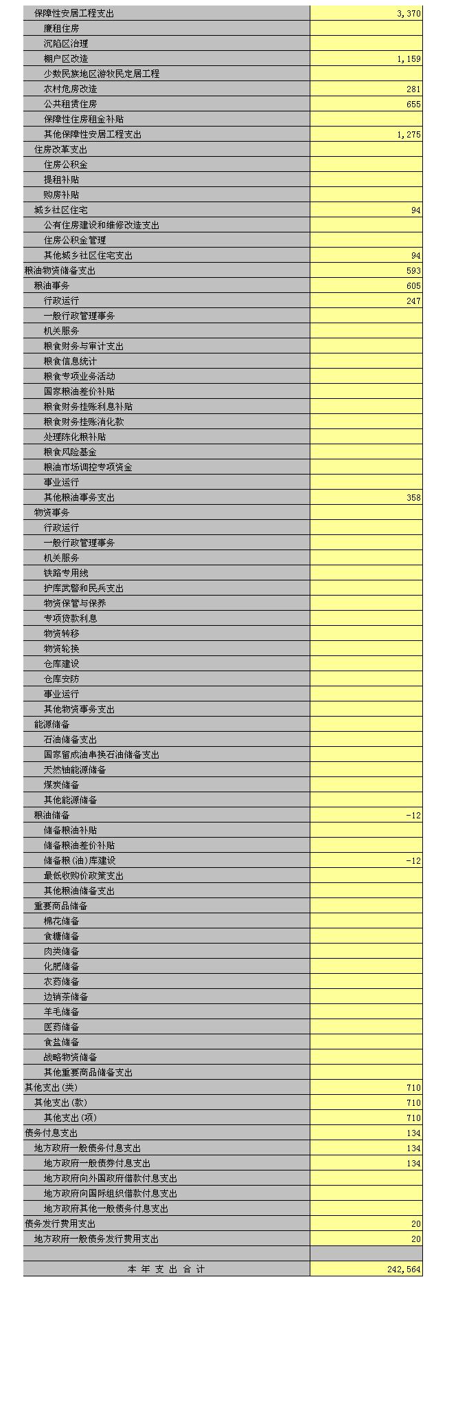 全县一般公共预算支出完成242564万元,完成调整预算的98.9%,比上年增长18.1%,增加支出37132万元。其中,农林水事务支出54644万元,完成调整预算的97.4%,比上年增长5.6%,增加支出2915万元;教育支出46516万元,完成调整预算的100%,比上年增长10.6%,增加支出4443万元;社会保障和就业支出53179万元,完成调整预算的100%,比上年增长23.4%,增加支出10089万元;一般公共服务支出19882万元,完成调整预算的99.9%,比上年增长44.7%,增加支出6412万元;公共安全(主要包括公检法司)支出8772万元,完成调整预算的99.9%,比上年增长13.0%,增加支出1010万元;城乡社区事务支出9951万元,完成调整预算的100%,比上年增长175.4%,增加支出6338万元;节能环保支出4214万元,完成调整预算的99.6%,比上年下降60.3%,减少支出6389万元。