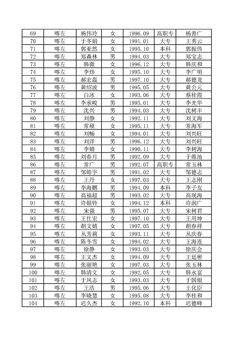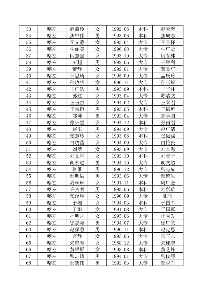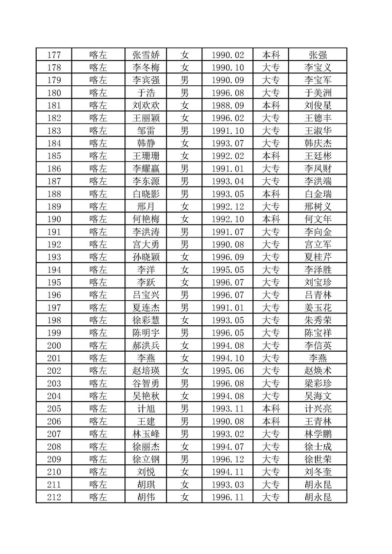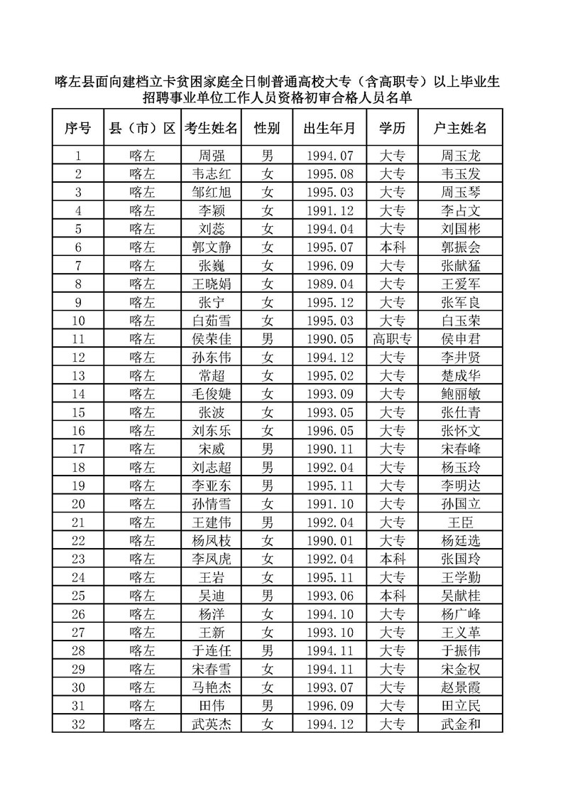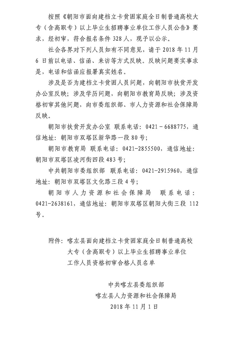 喀左县面向建档立卡贫困家庭全日制普通高校大专(含高职专)以上毕业生招聘事业单位工作人员初审合格人员公告