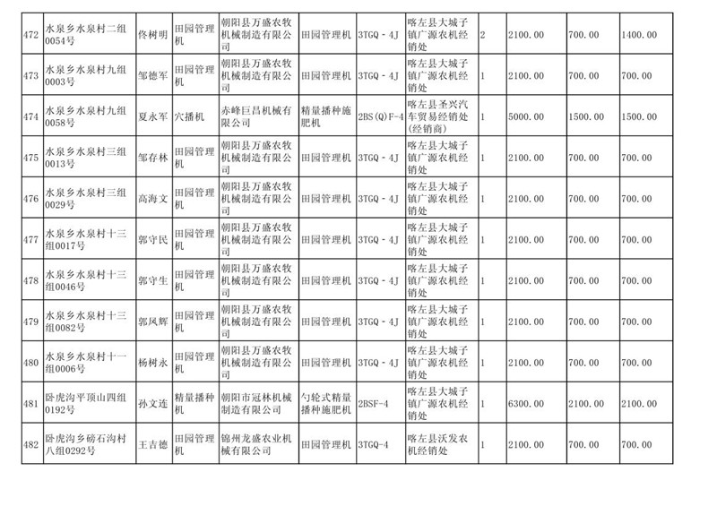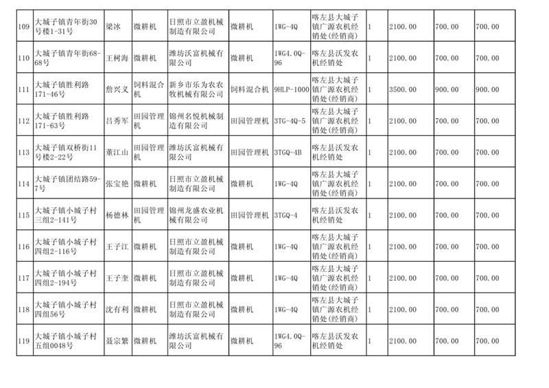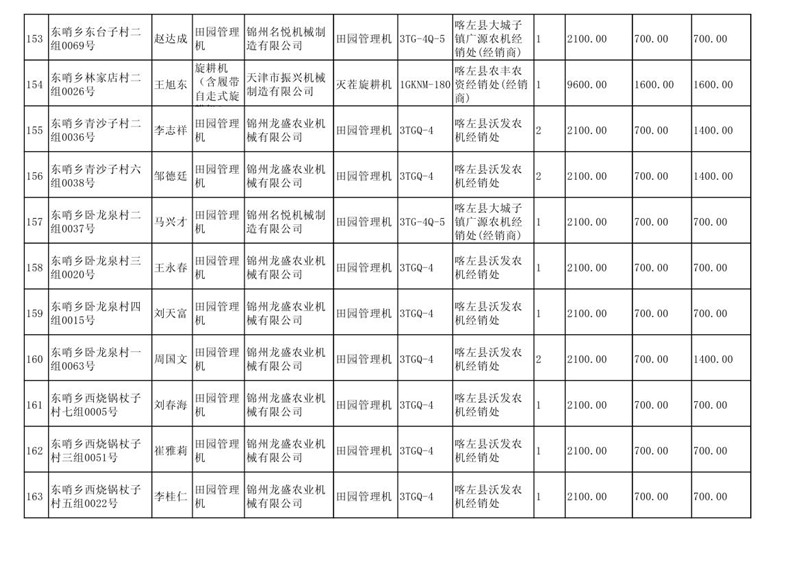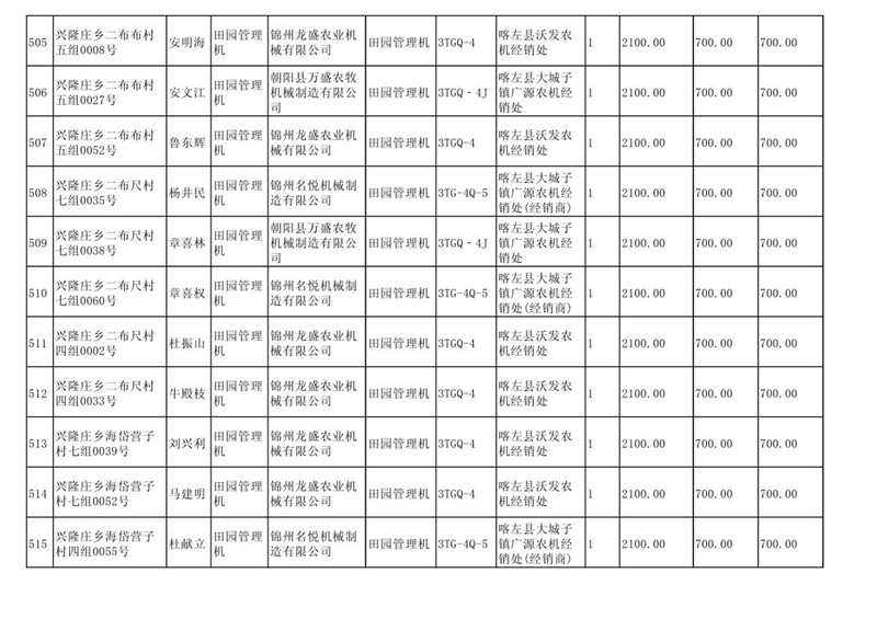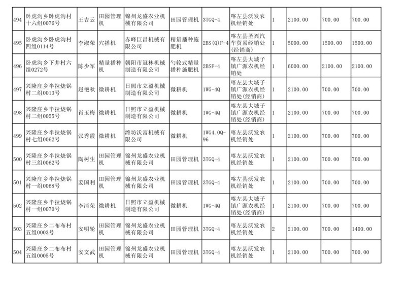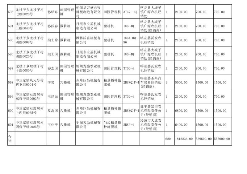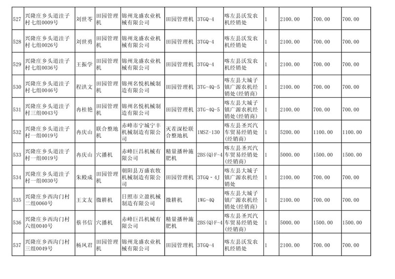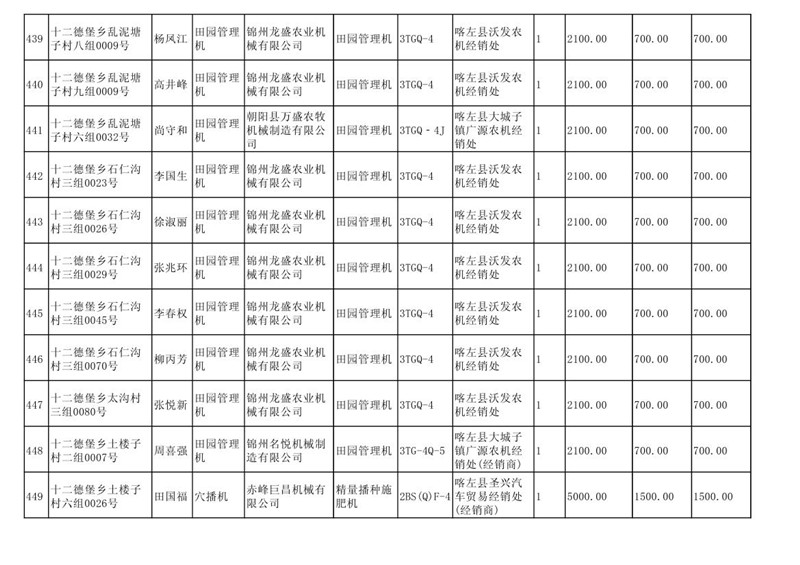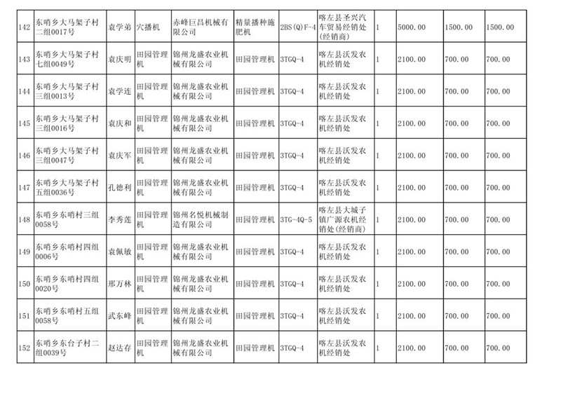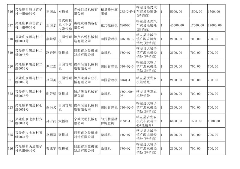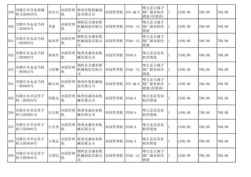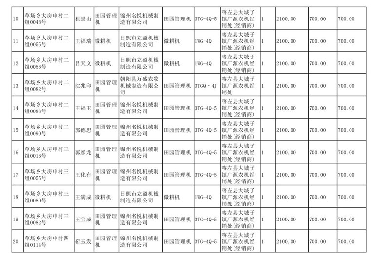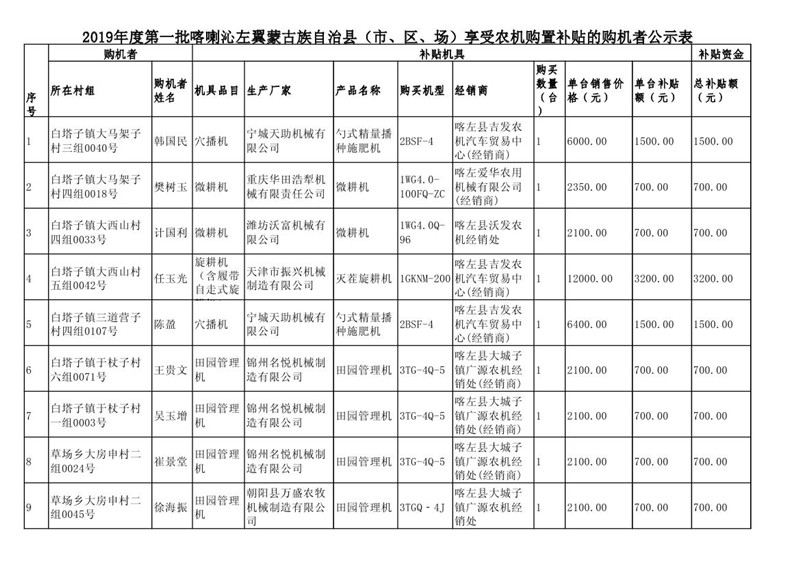 2019年度第一批喀喇沁左翼蒙古族自治县(市、区、场)享受农机购置补贴的购机者公示表