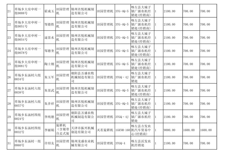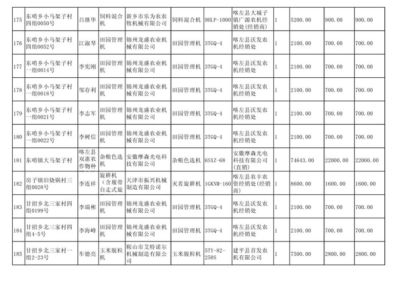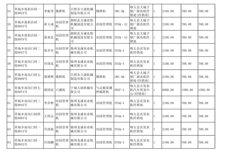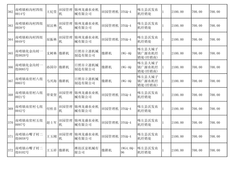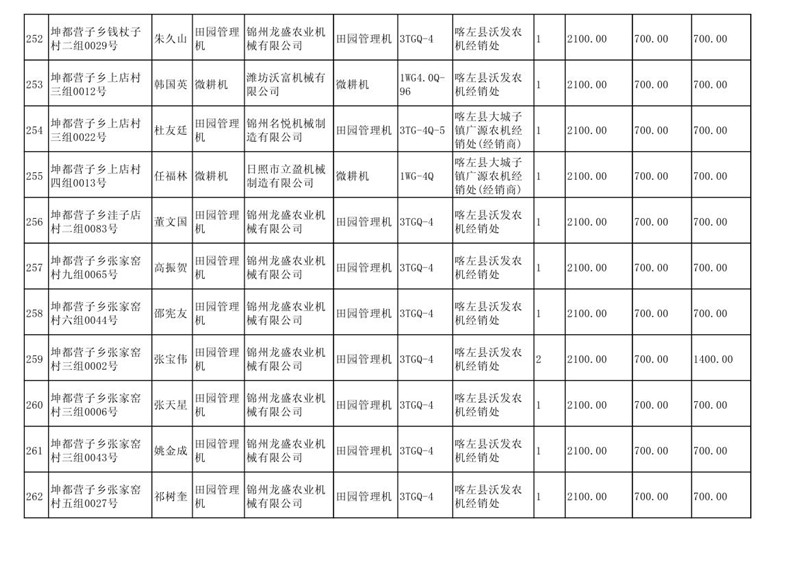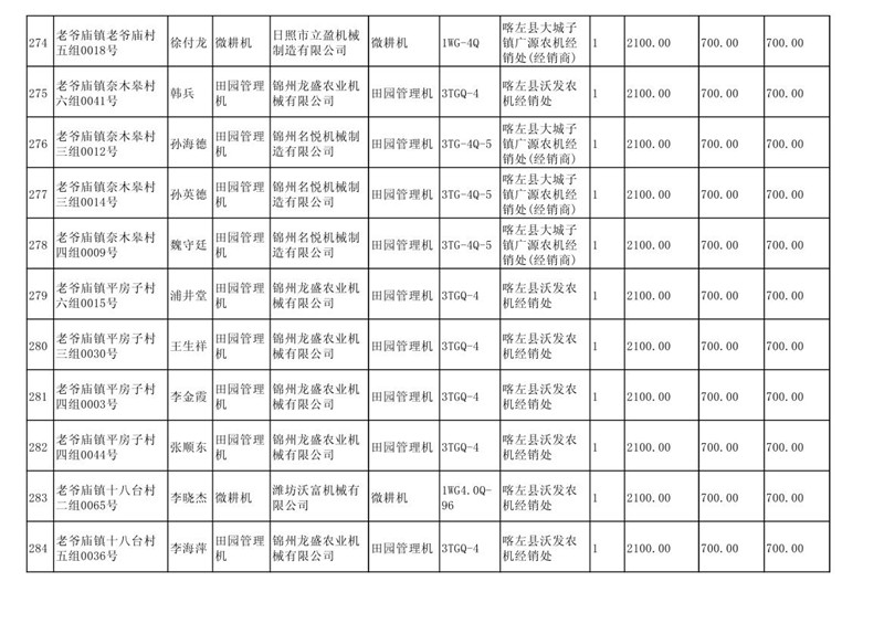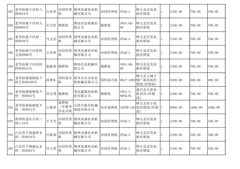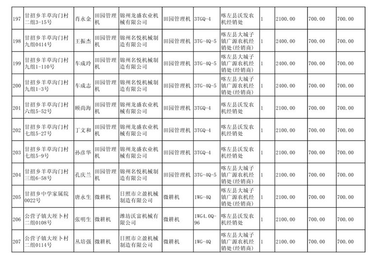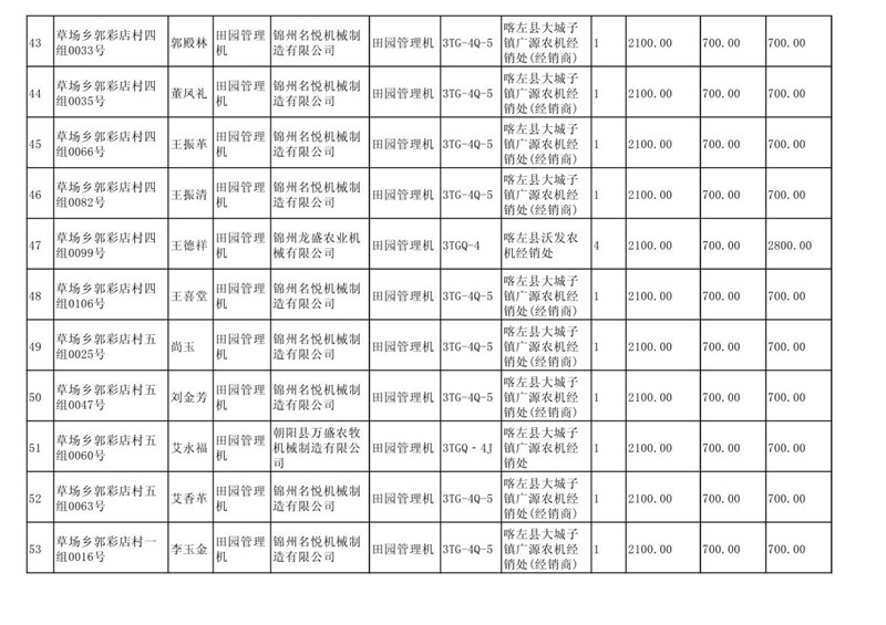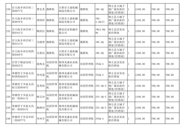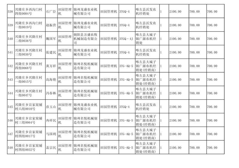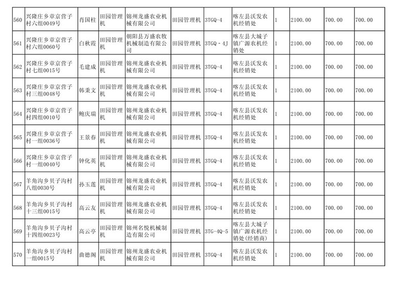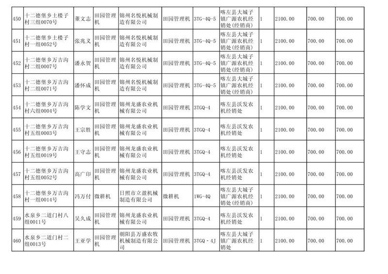 2019年度第一批喀喇沁左翼蒙古族自治县(市、区、场)享受农机购置补贴的购机者公示表