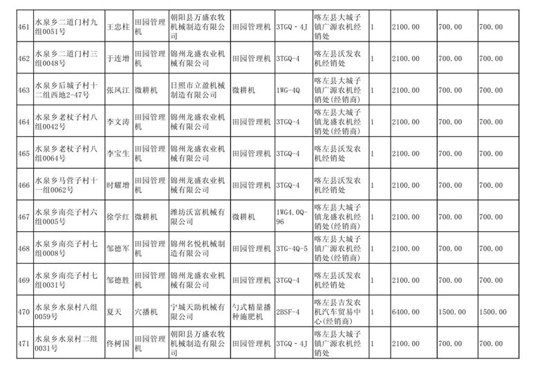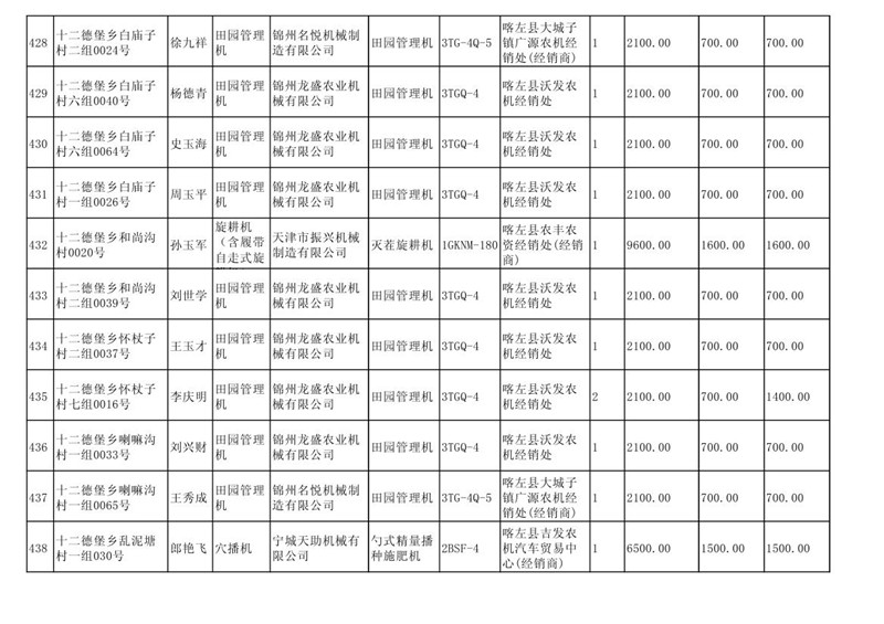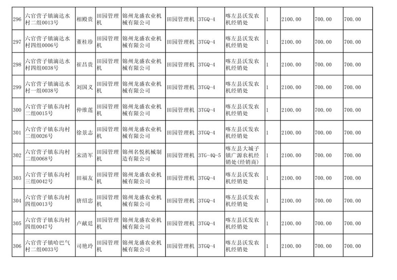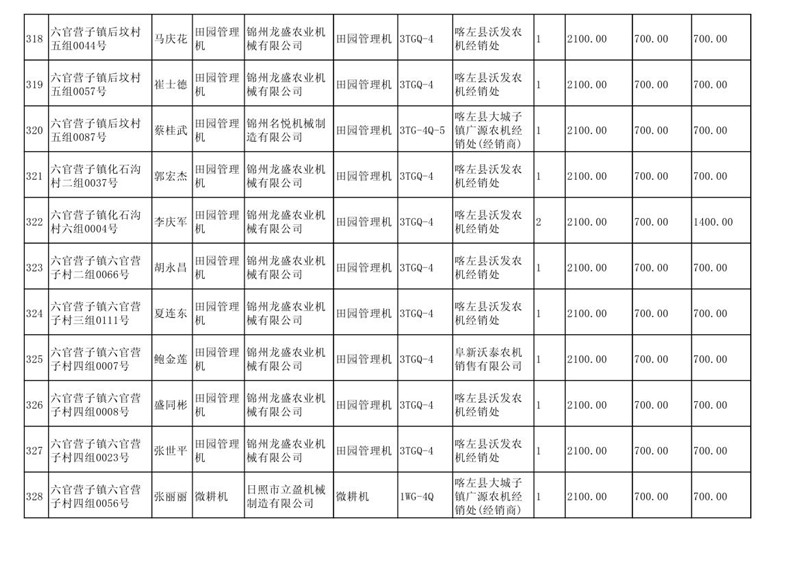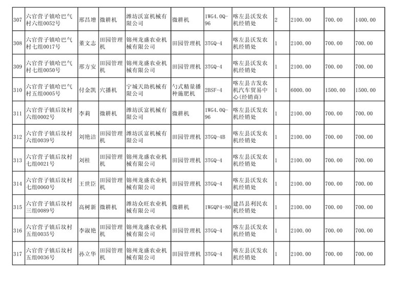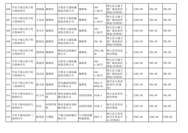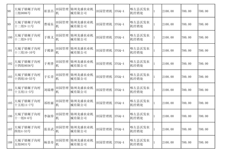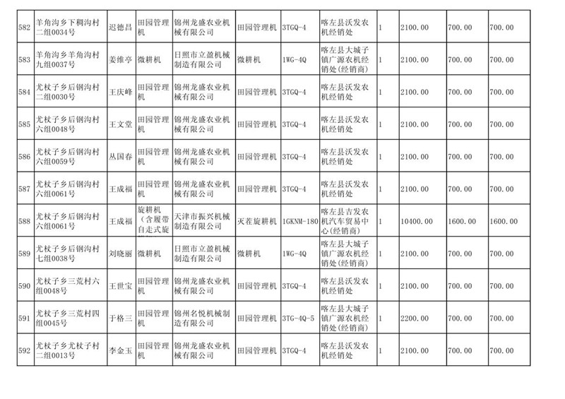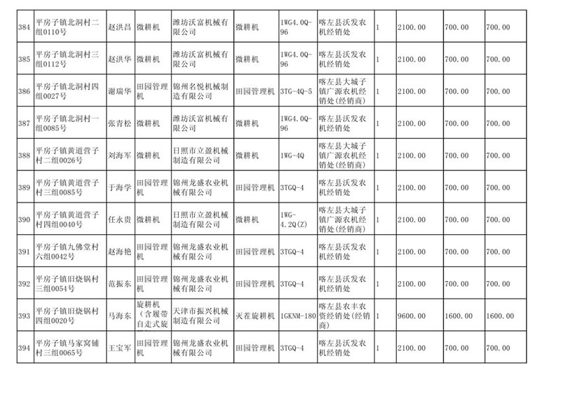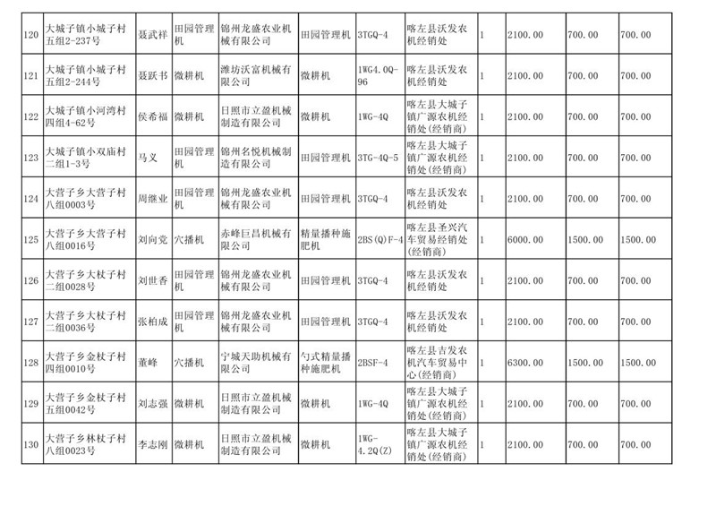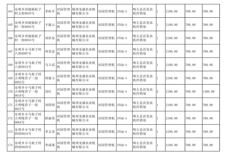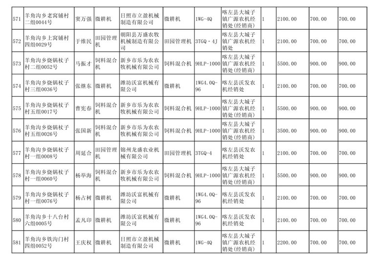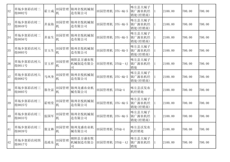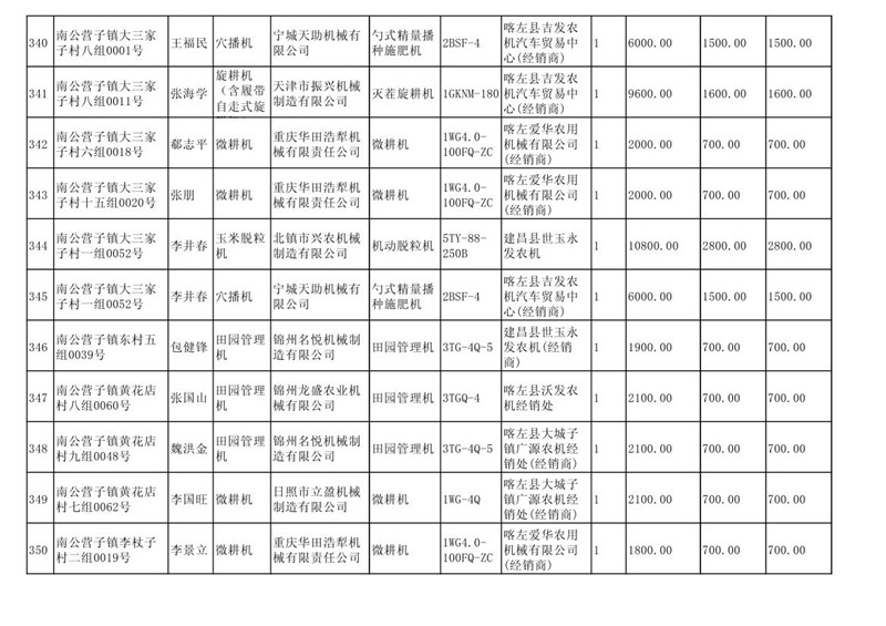 2019年度第一批喀喇沁左翼蒙古族自治县(市、区、场)享受农机购置补贴的购机者公示表