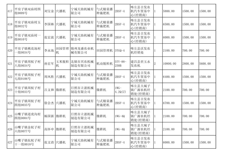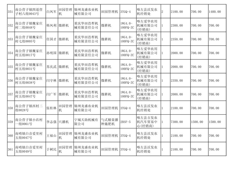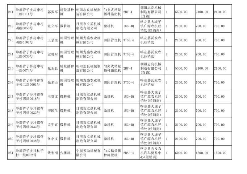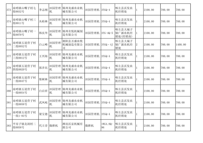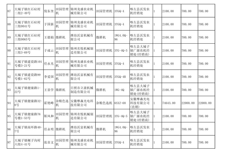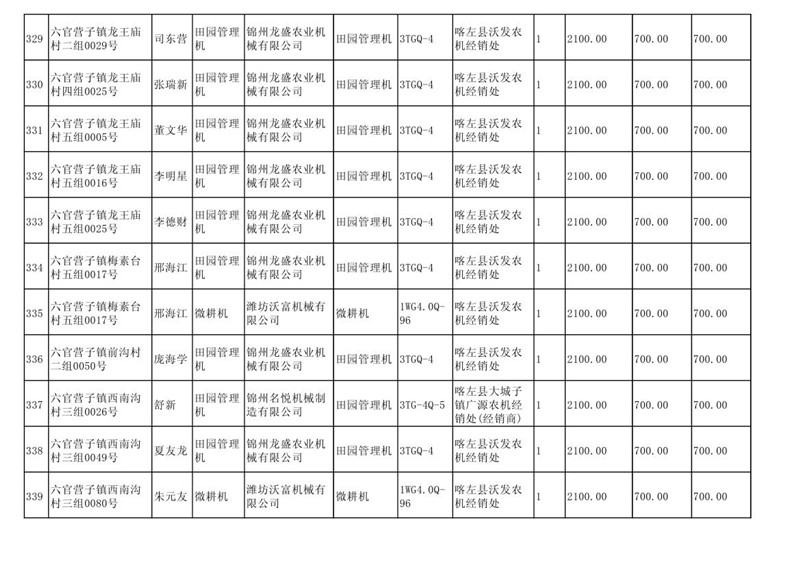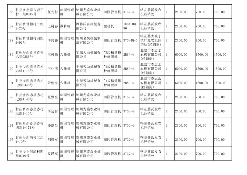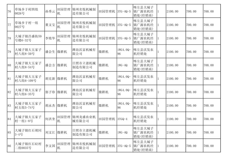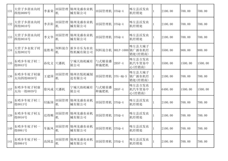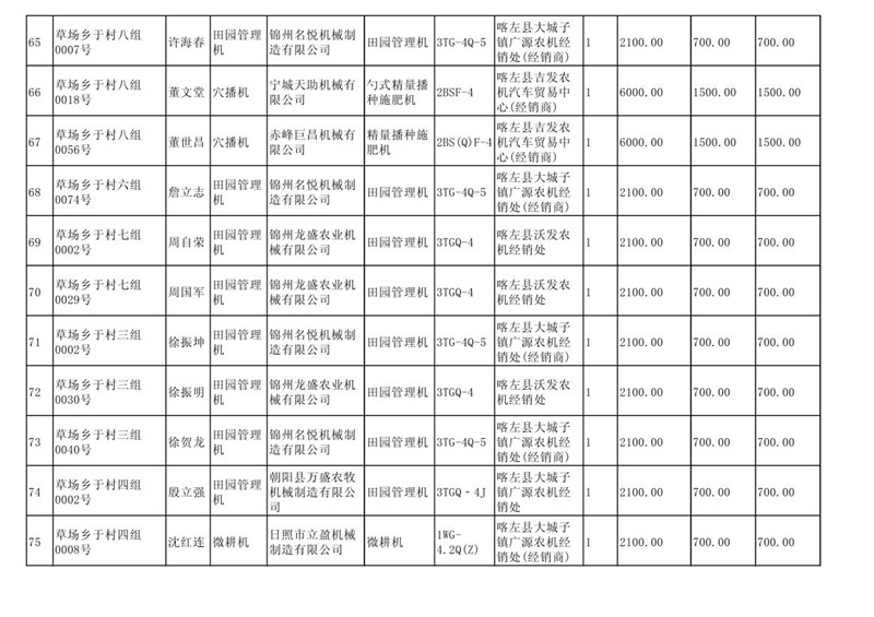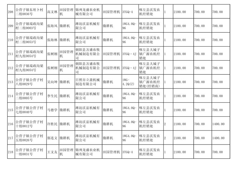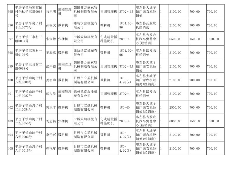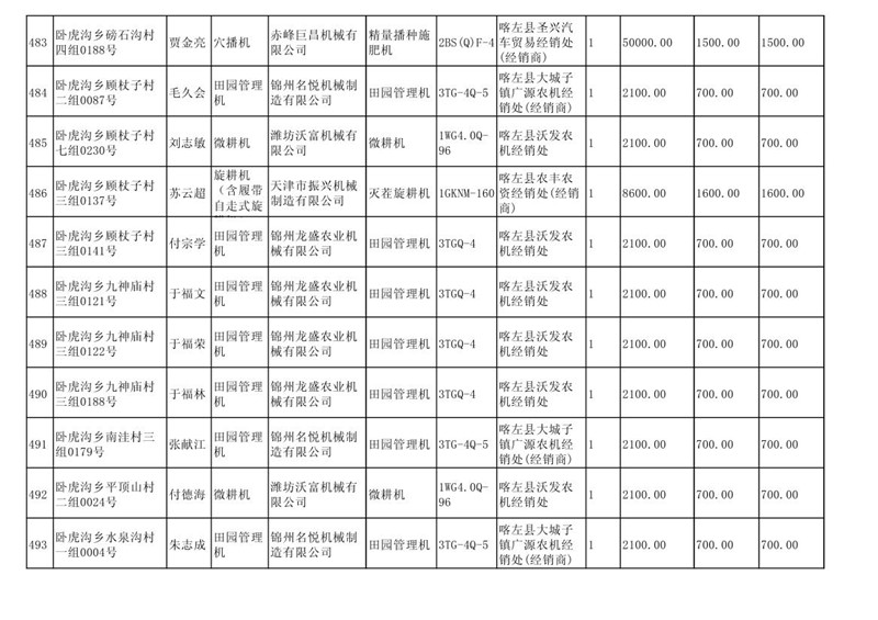 2019年度第一批喀喇沁左翼蒙古族自治县(市、区、场)享受农机购置补贴的购机者公示表