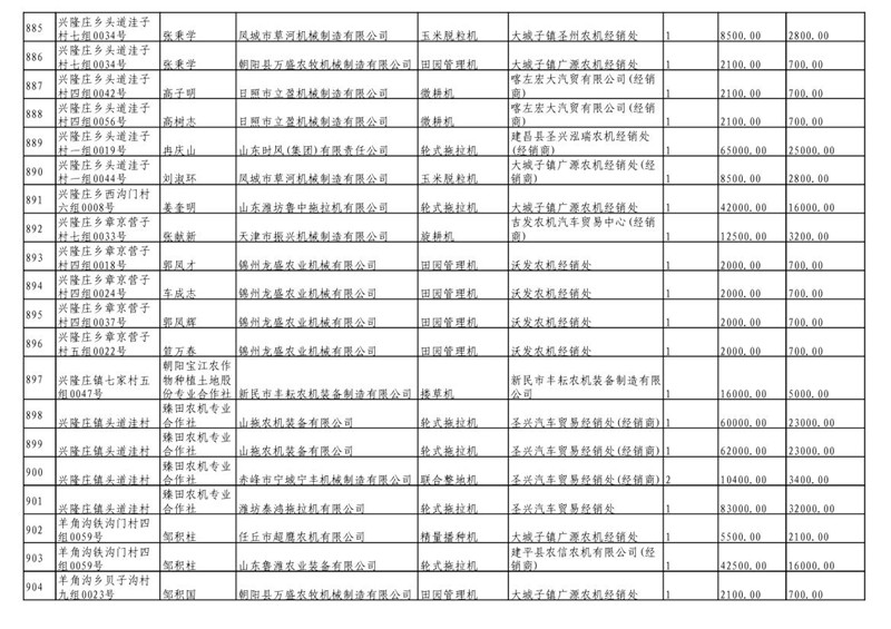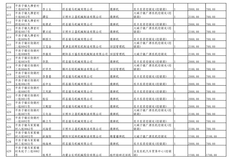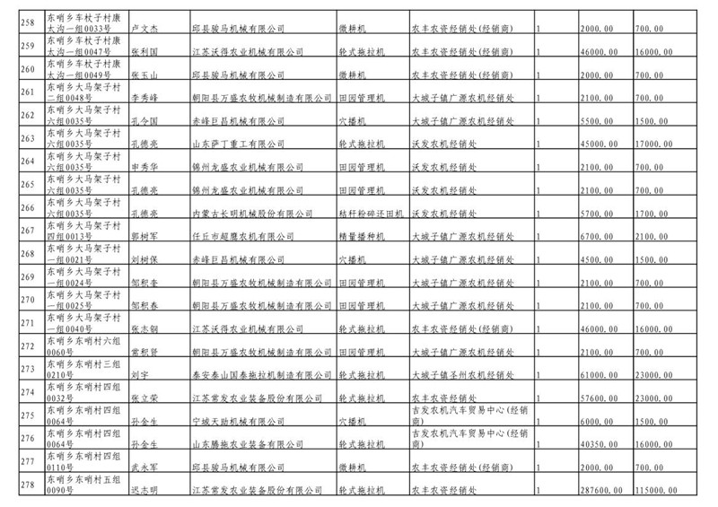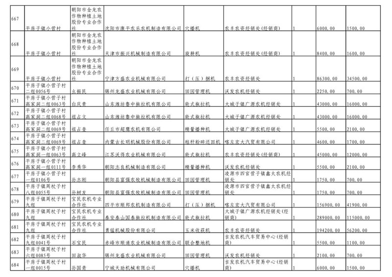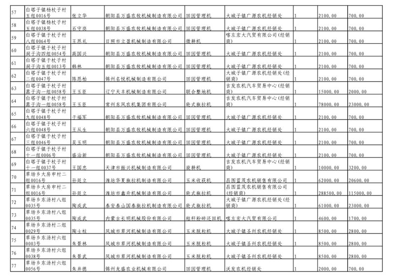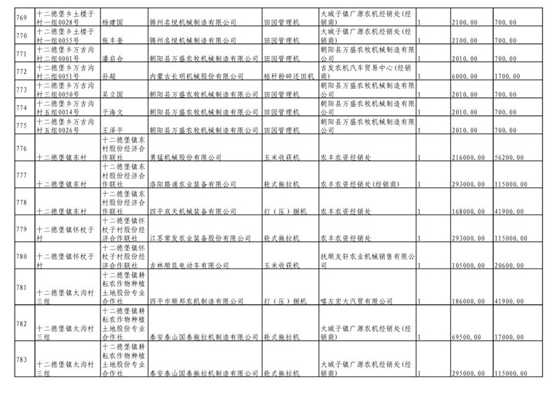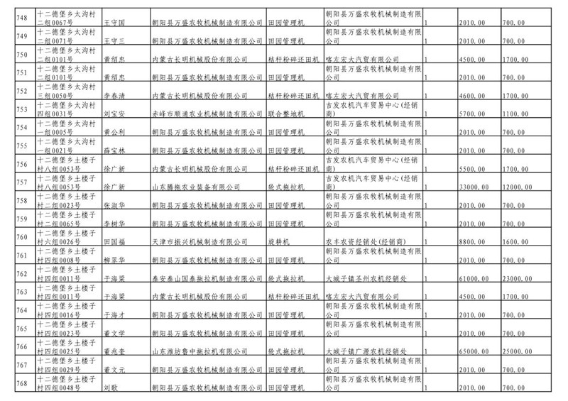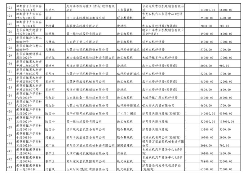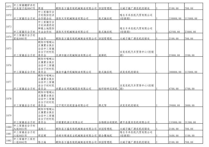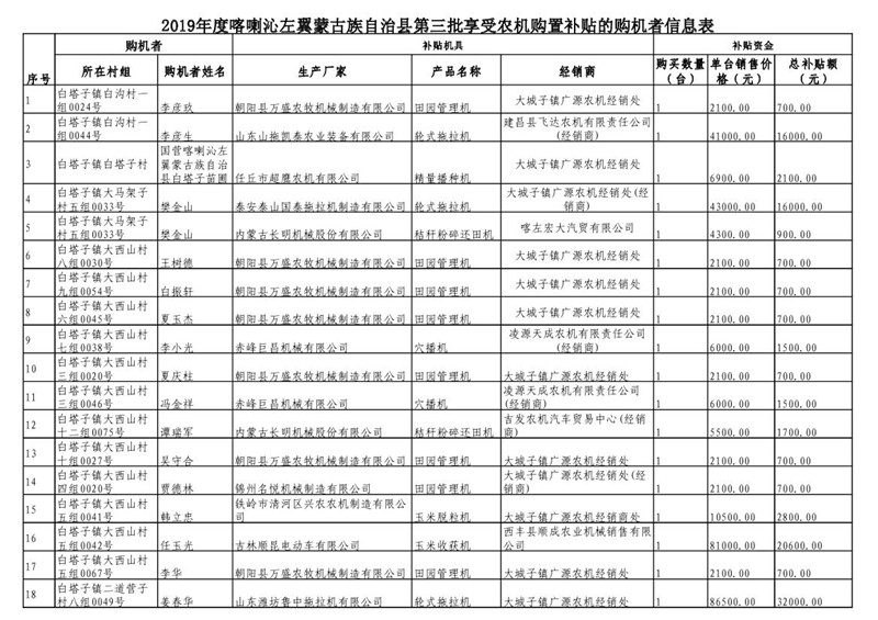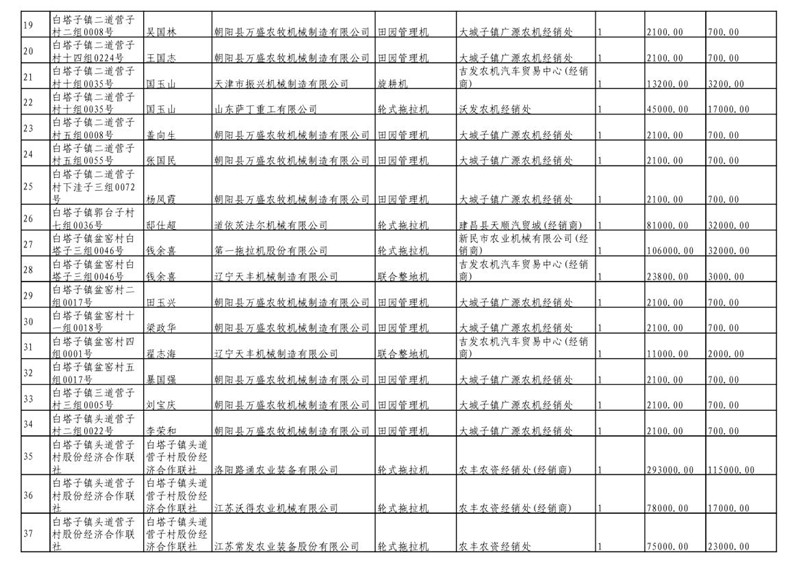 2019年度喀左县第三批享受农机购置补贴公示