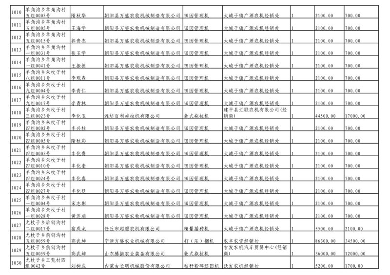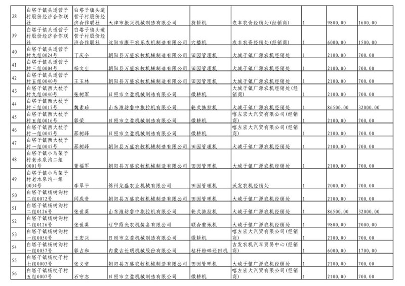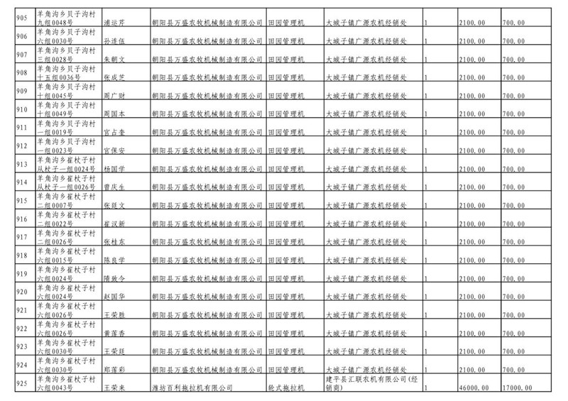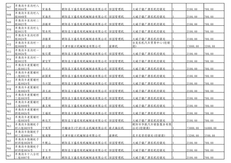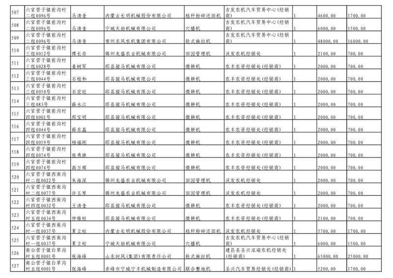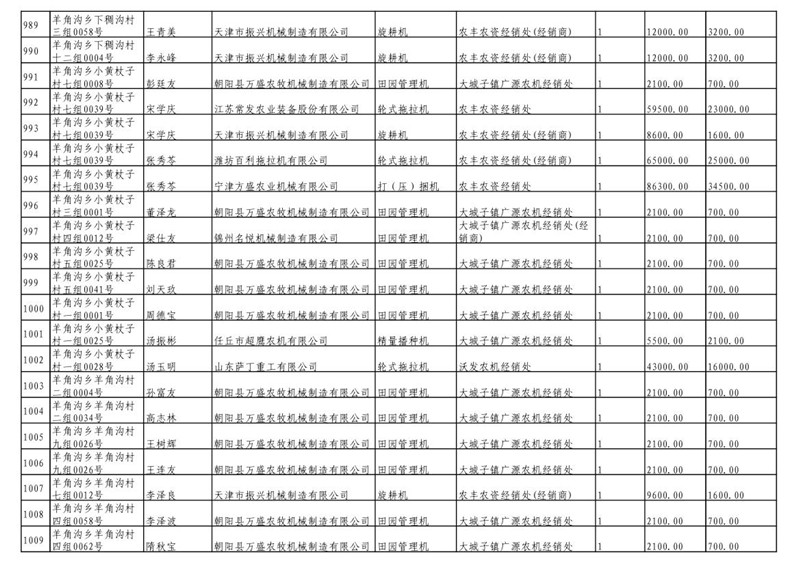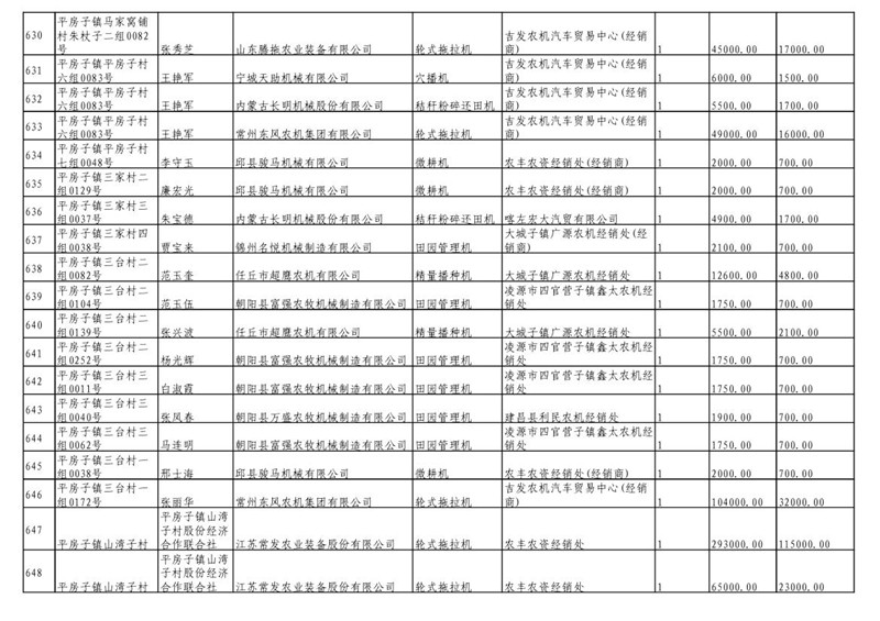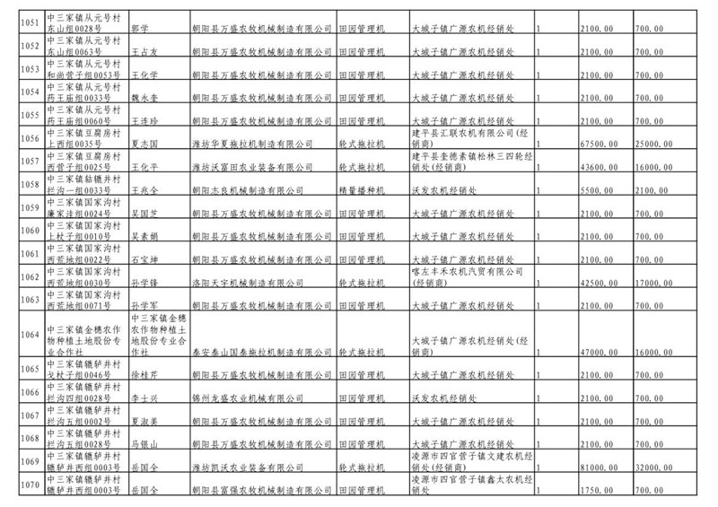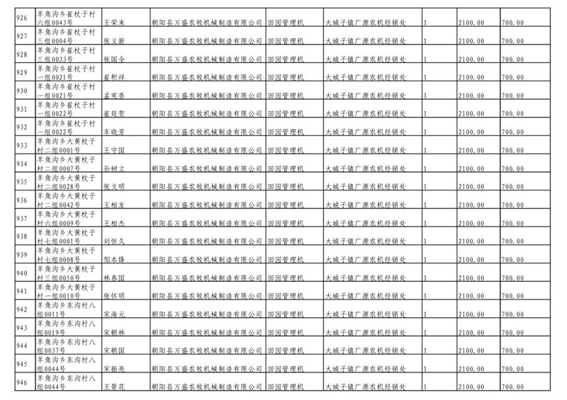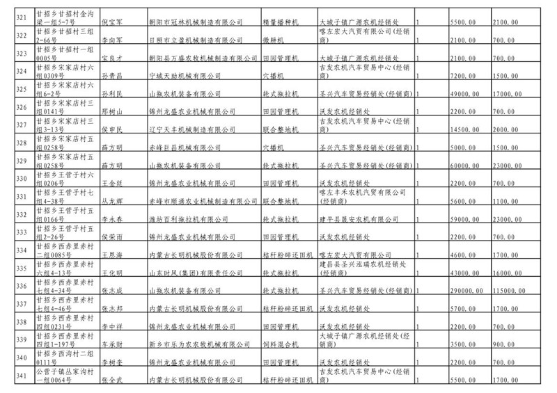 2019年度喀左县第三批享受农机购置补贴公示