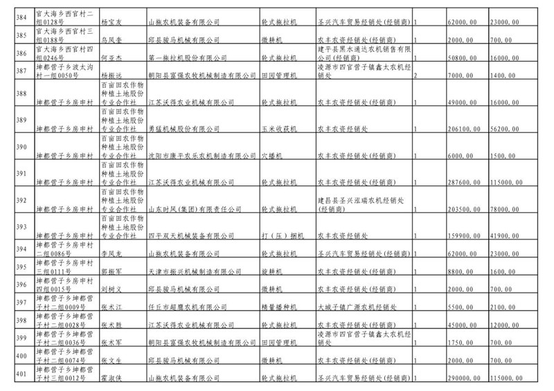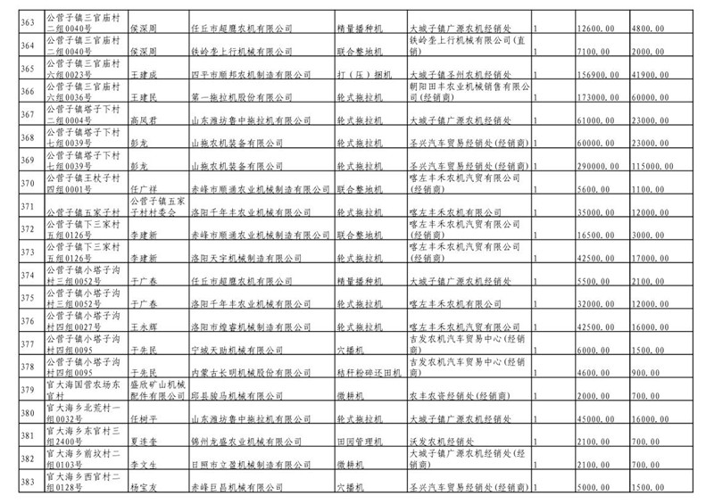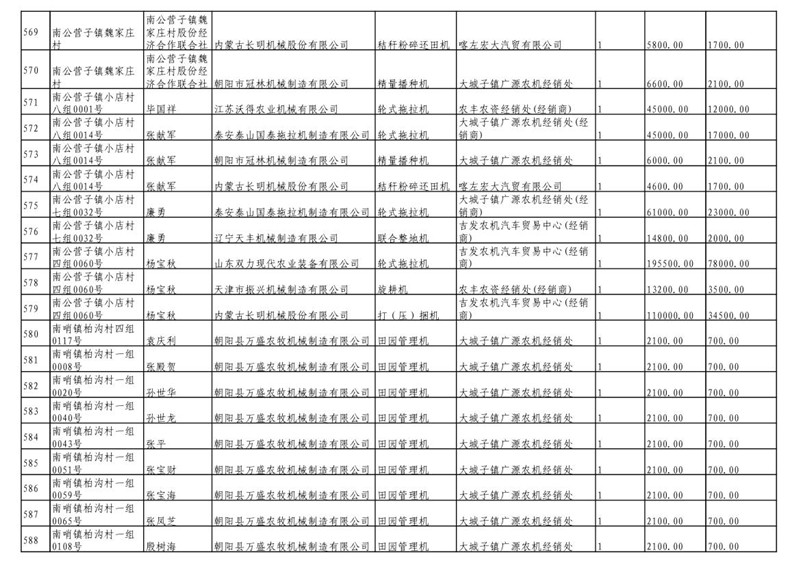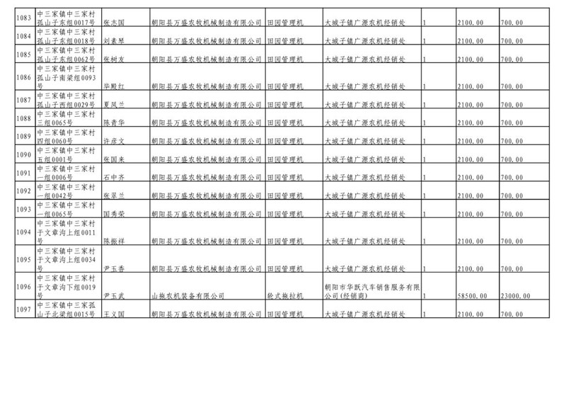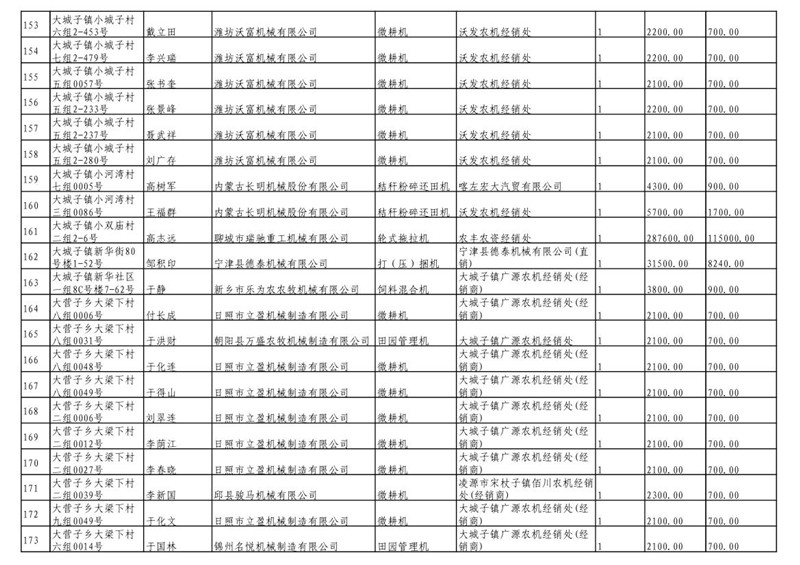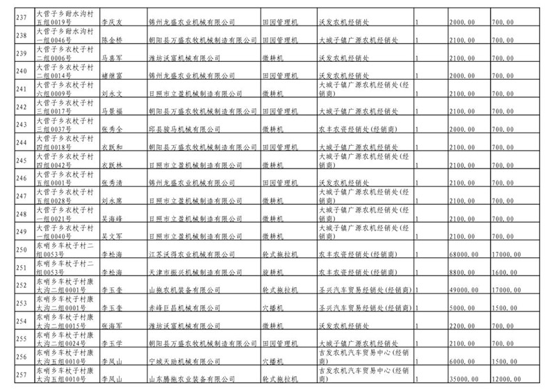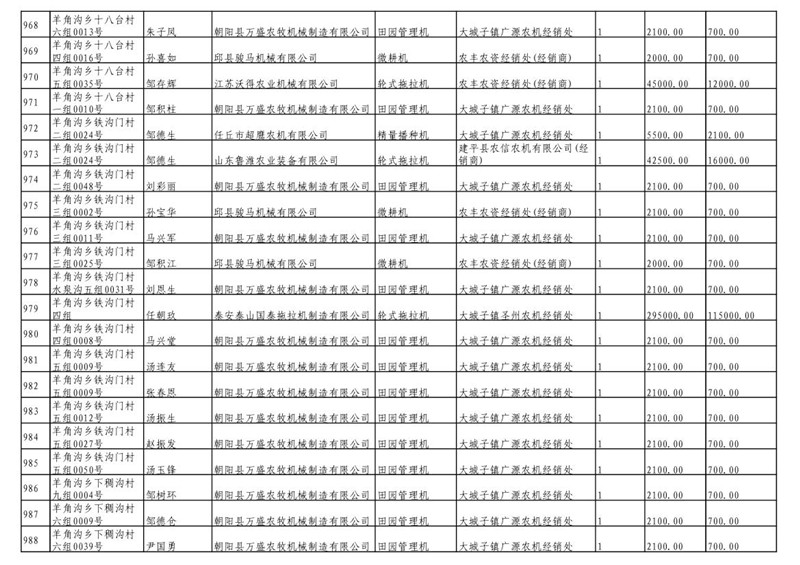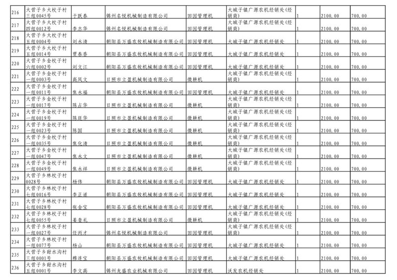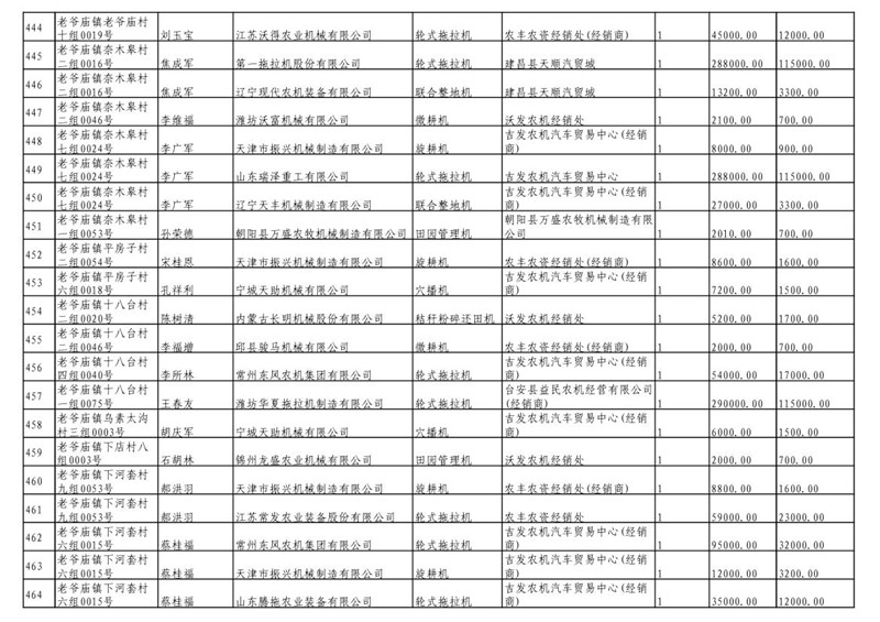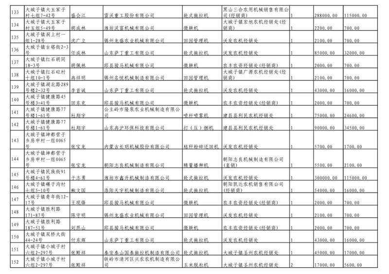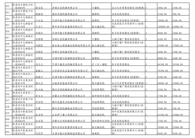2019年度喀左县第三批享受农机购置补贴公示