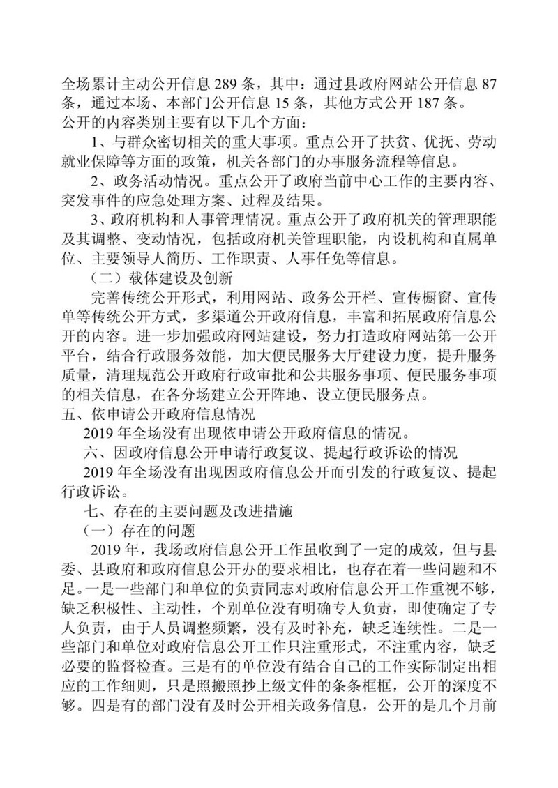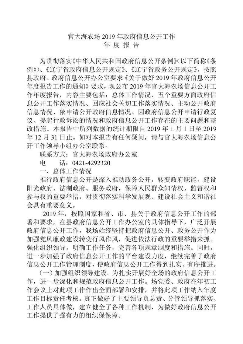 官大海农场2019年政府信息公开工作年度报告