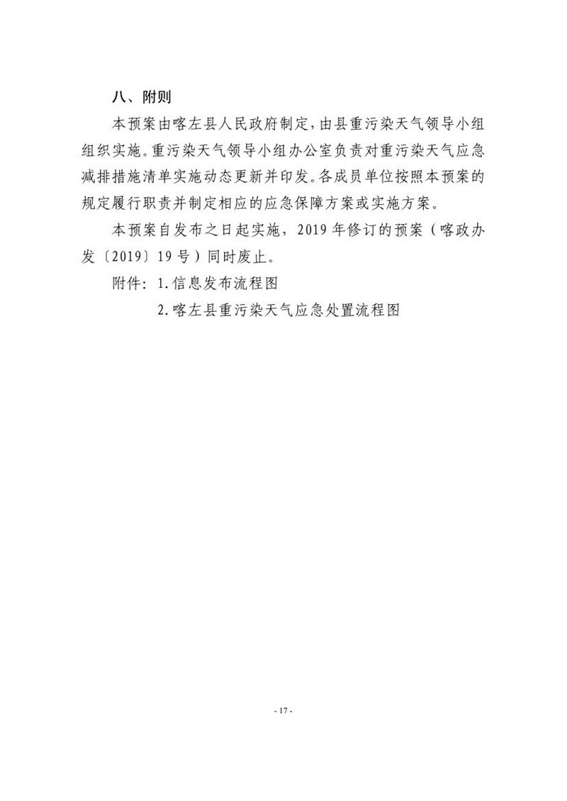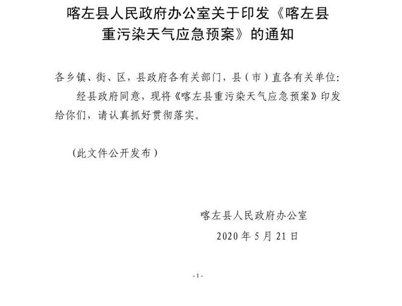 喀政办发〔2020〕22号 喀左县人民政府办公室关于印发《喀左县重污染天气应急预案》的通知