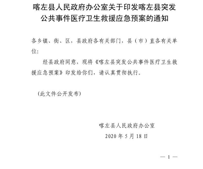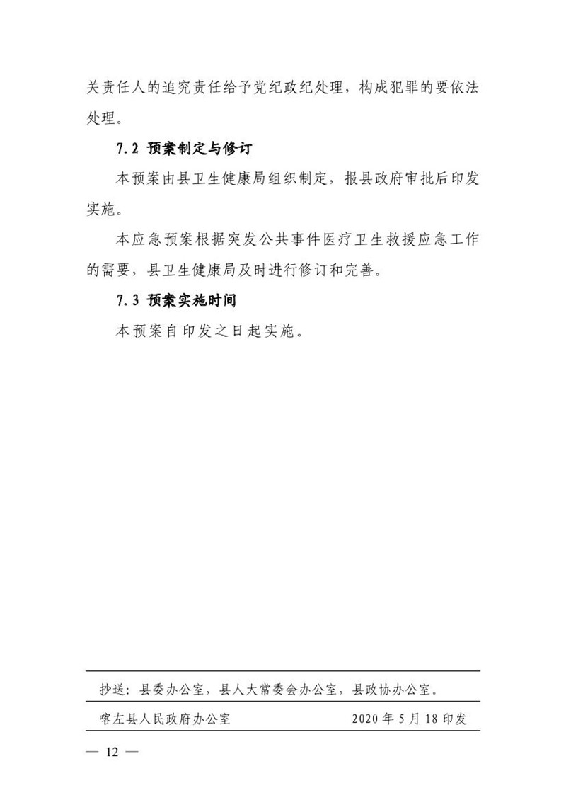 喀政办发〔2020〕21号 喀左县人民政府办公室关于印发喀左县突发公共事件医疗卫生救援应急预案的通知