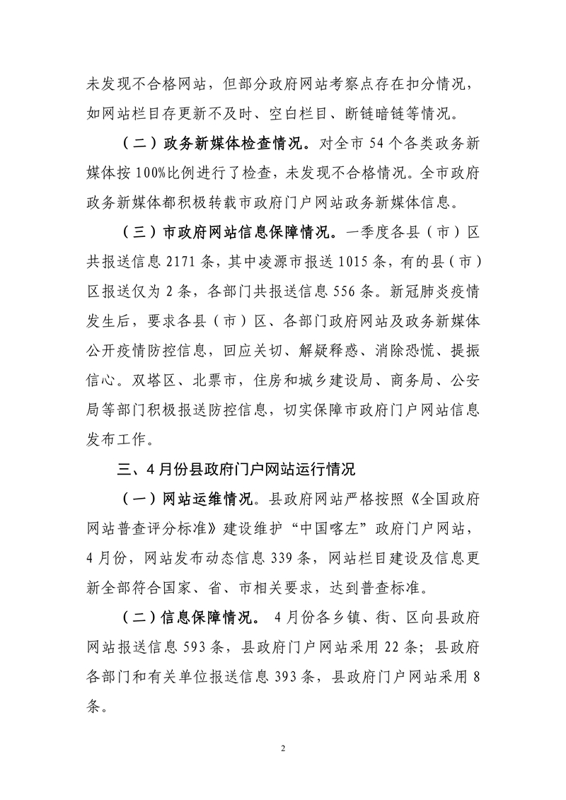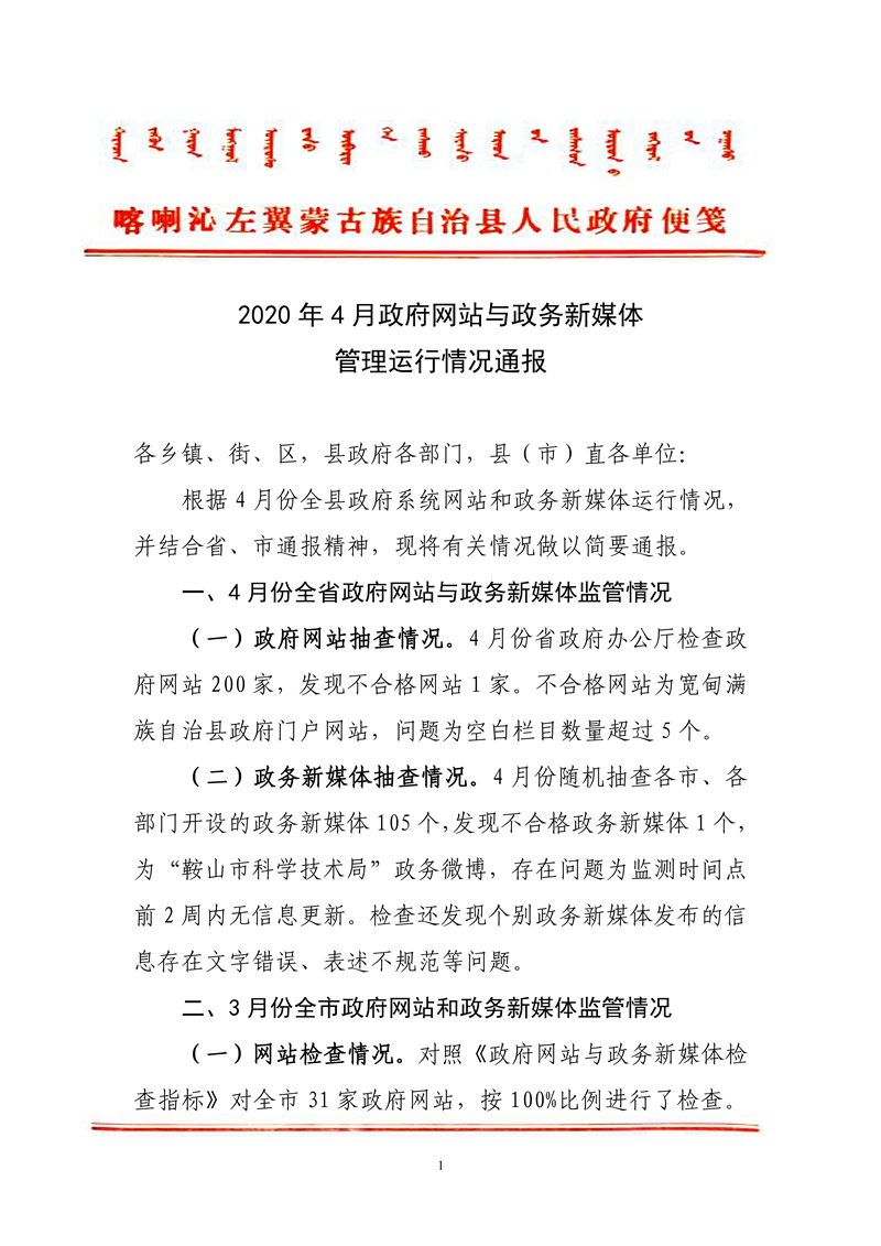 2020年4月政府网站与政务新媒体管理运行情况通报