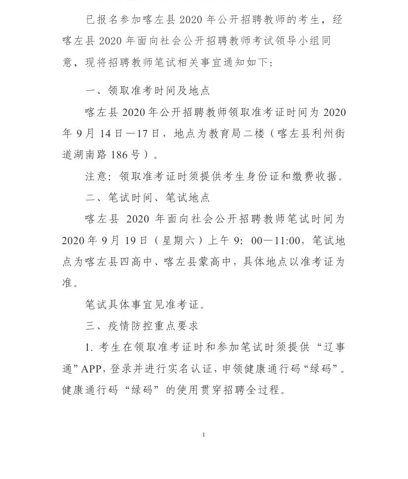 喀左县2020年面向社会公开招聘教师笔试及领取准考证公告