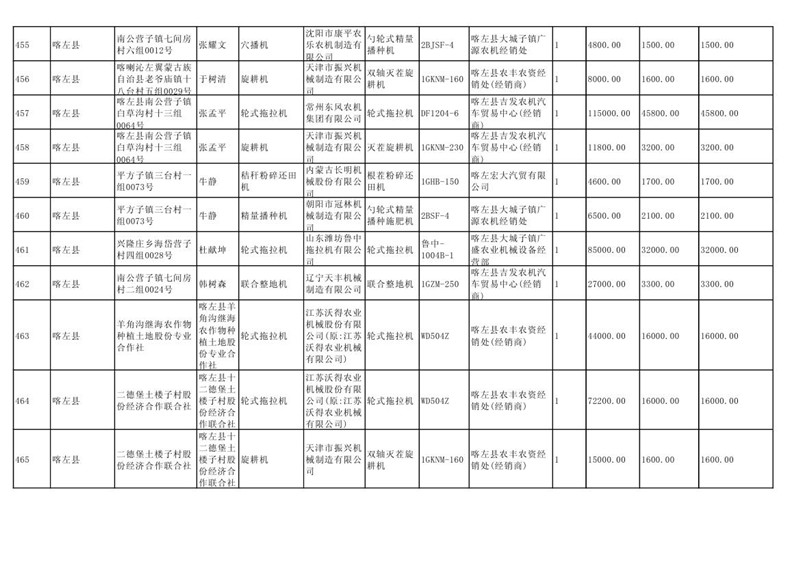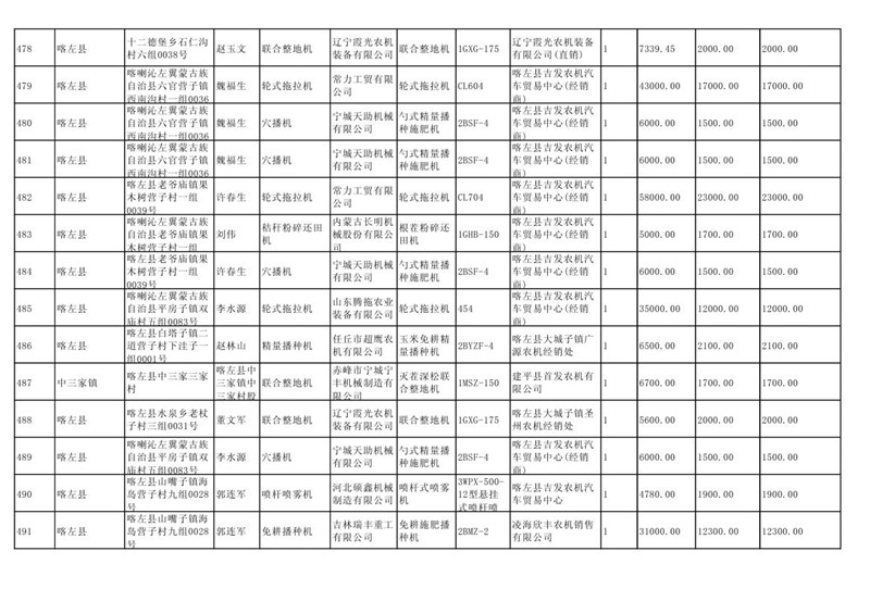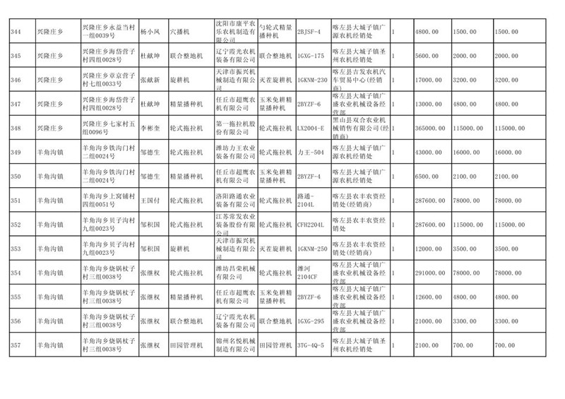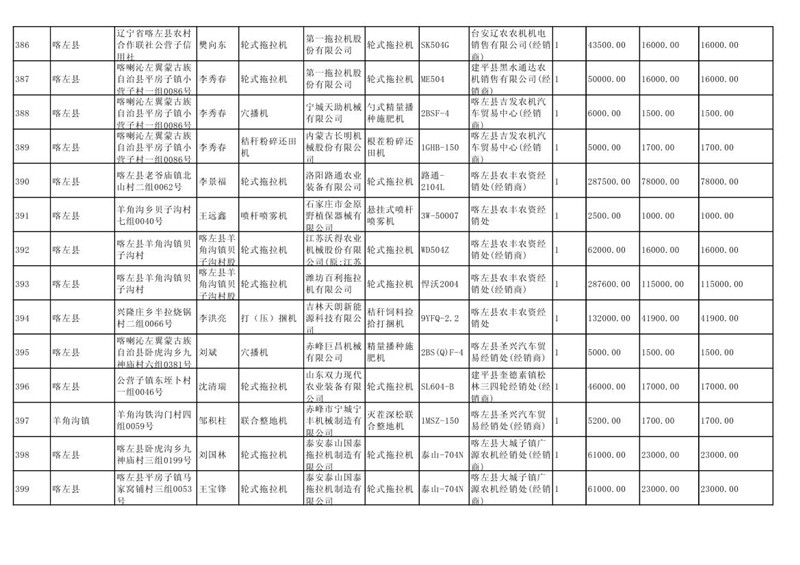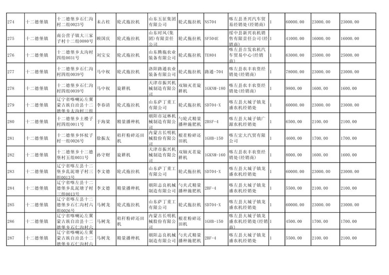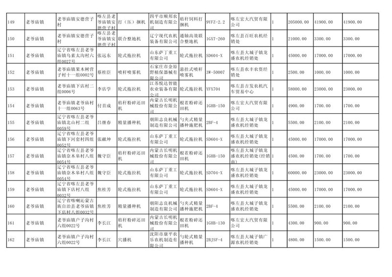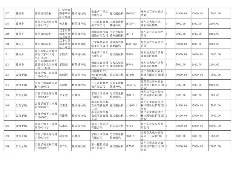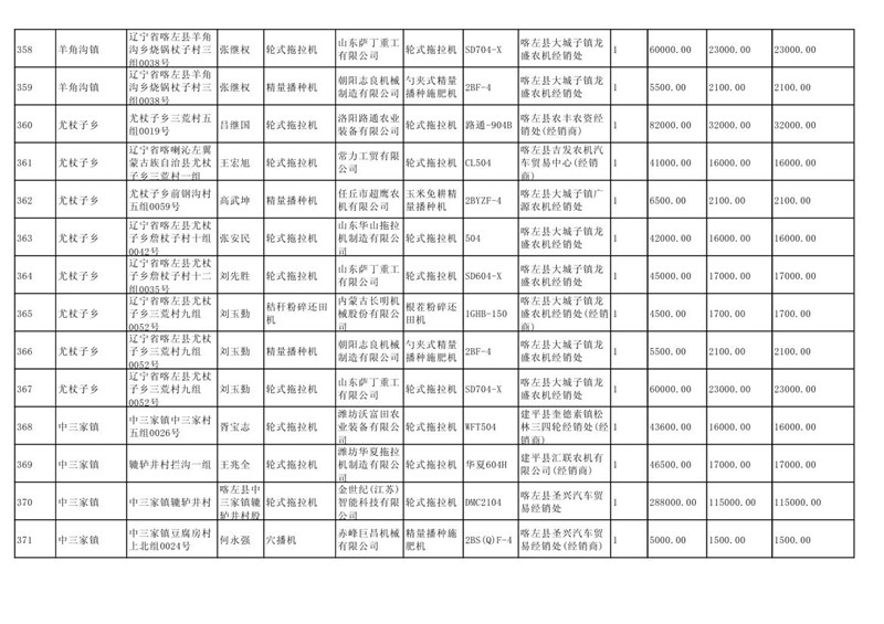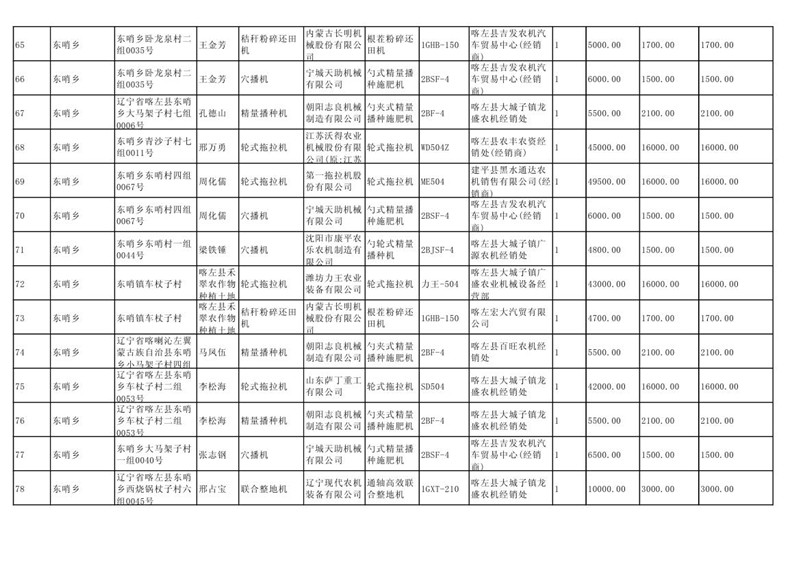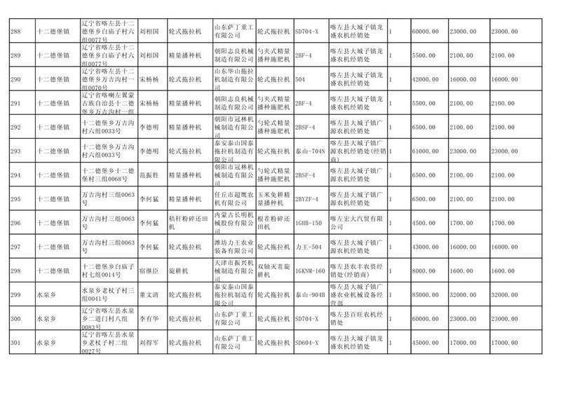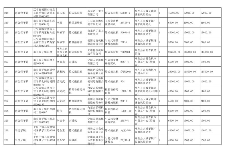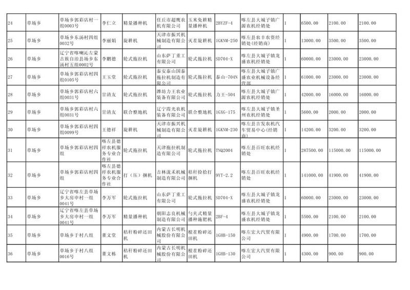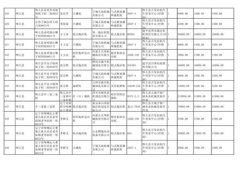喀左县2020年第一批农机购置补贴公示