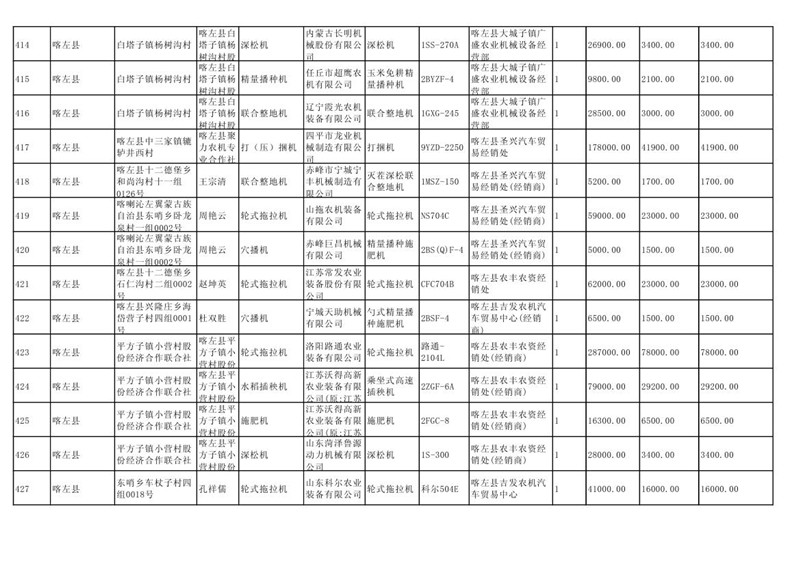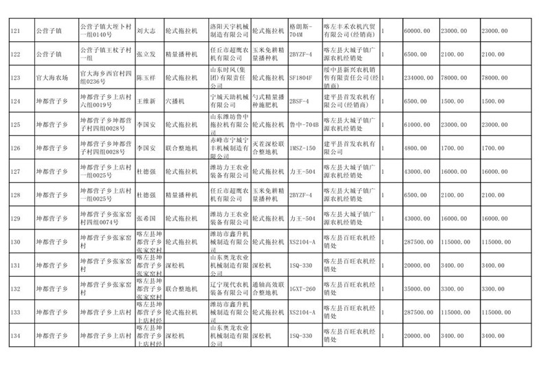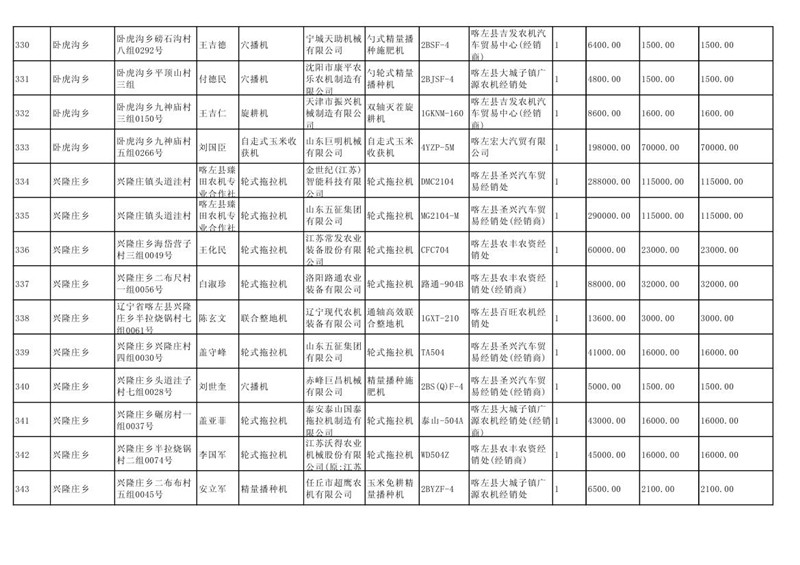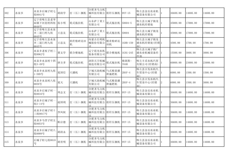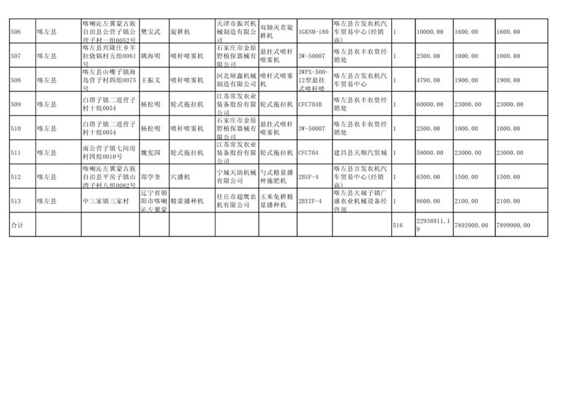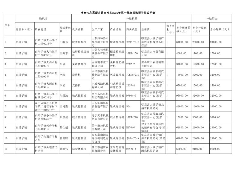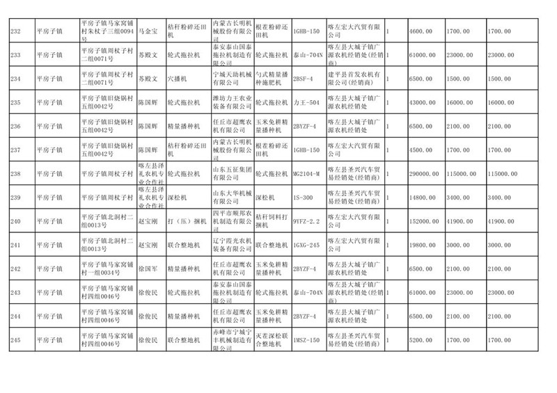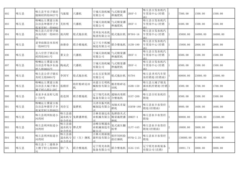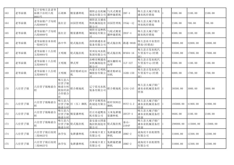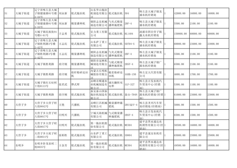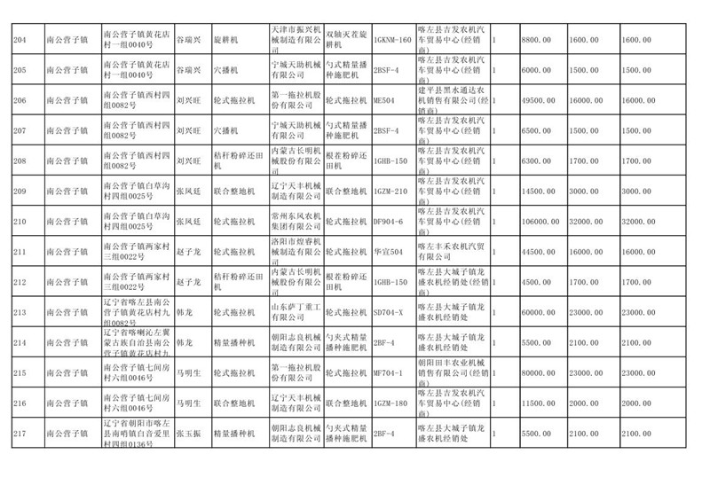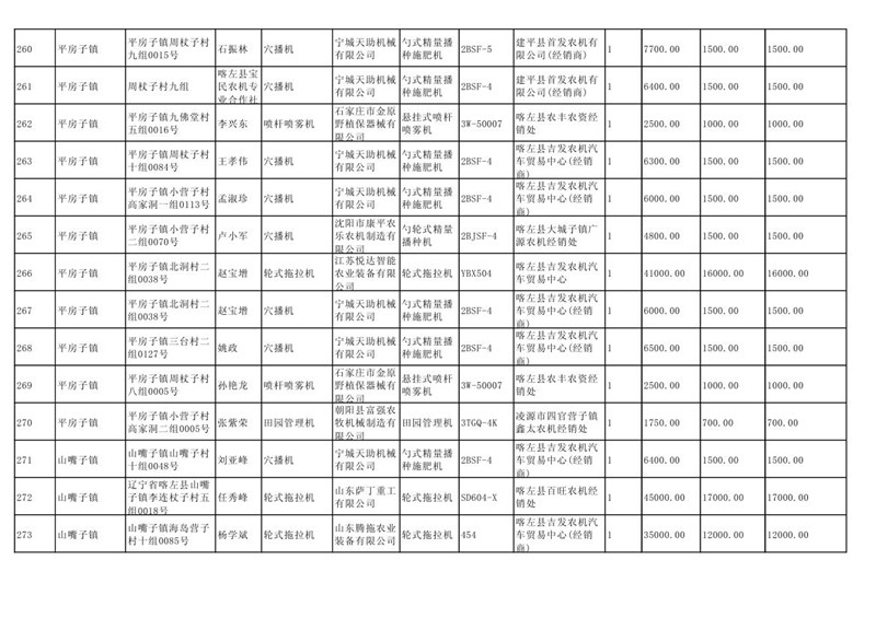 喀左县2020年第一批农机购置补贴公示