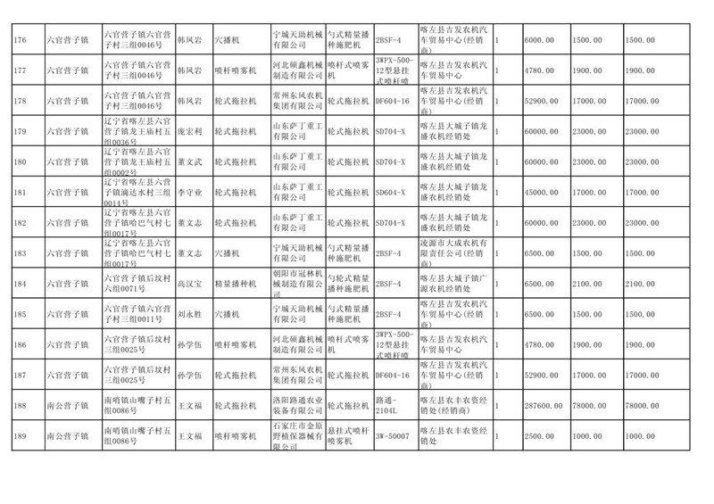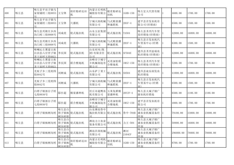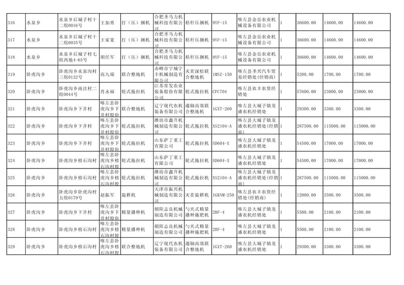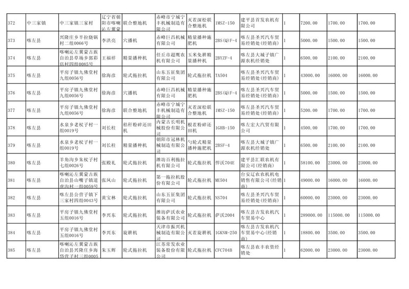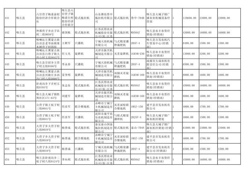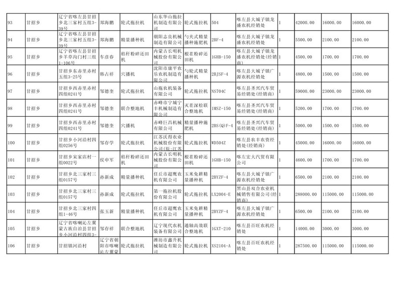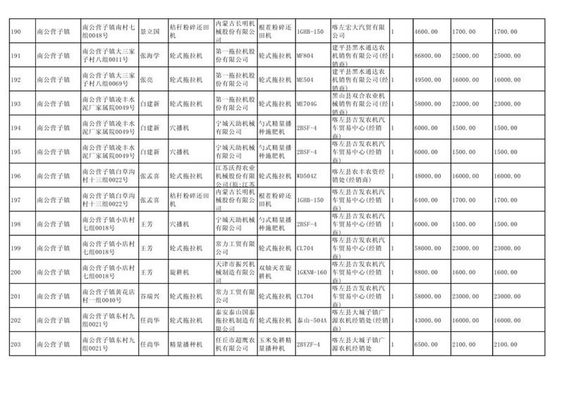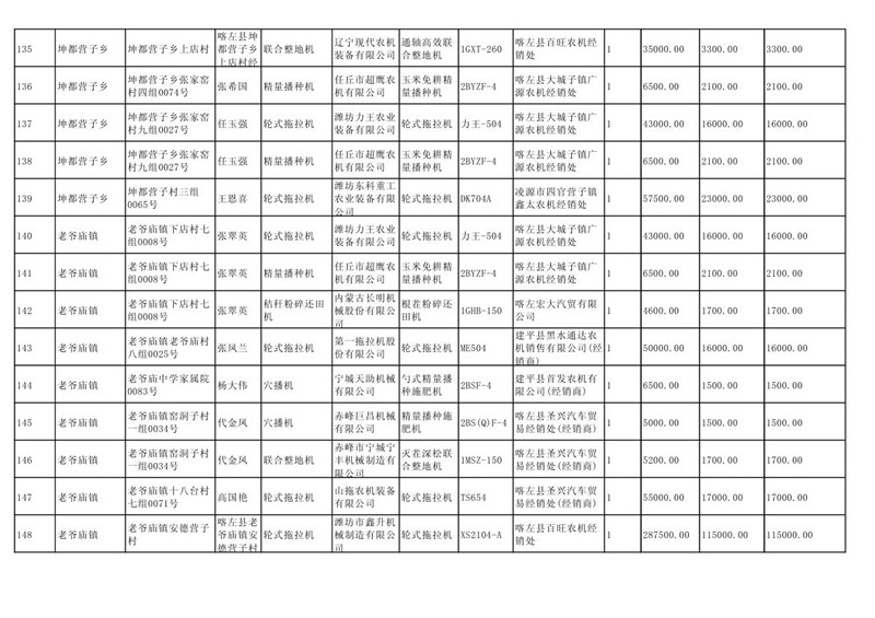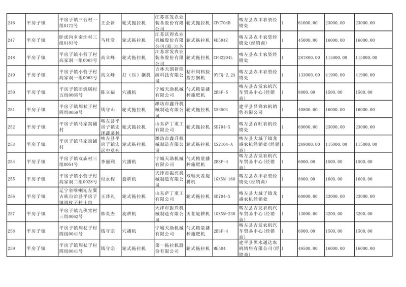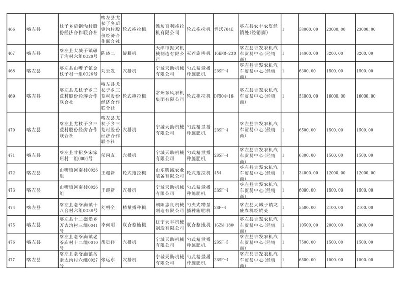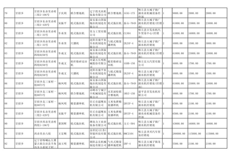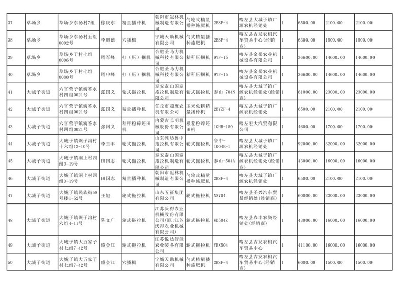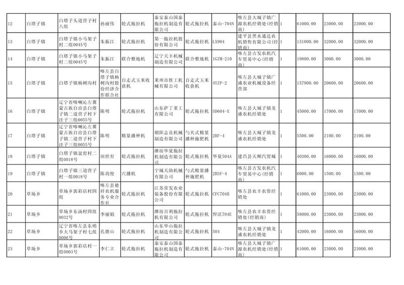 喀左县2020年第一批农机购置补贴公示