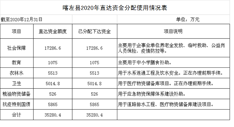 喀左县2020年直达资金分配使用情况公示(截止2020年12月31日)