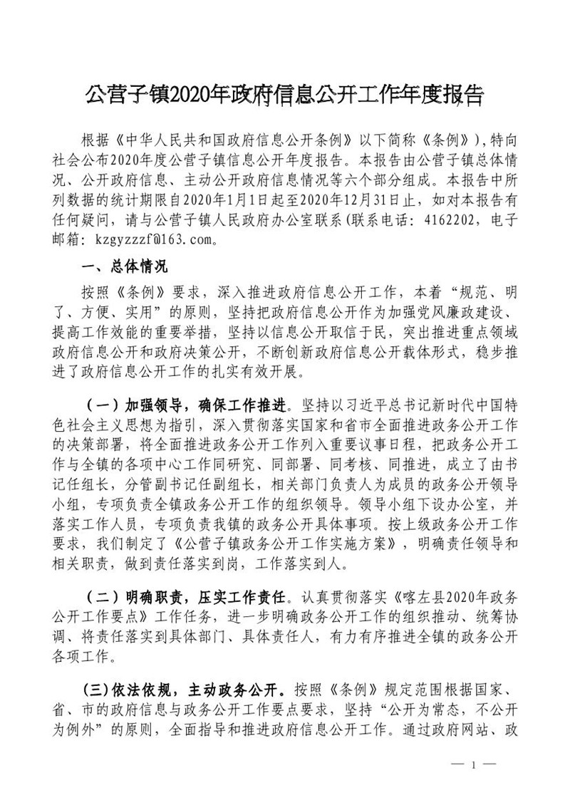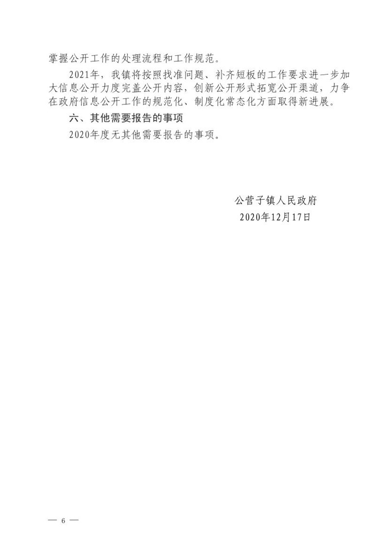 公营子镇2020年政府信息公开工作年度报告