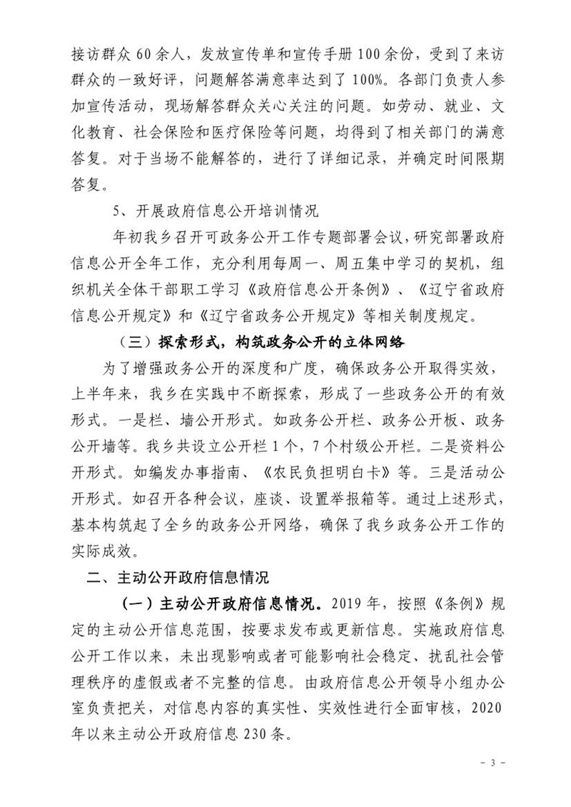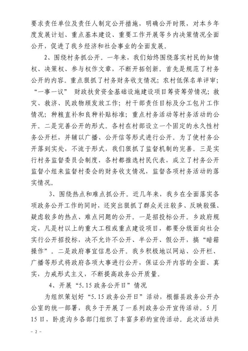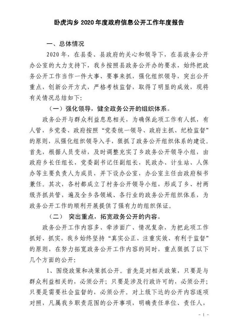 卧虎沟乡2020年度政府信息公开工作年度报告