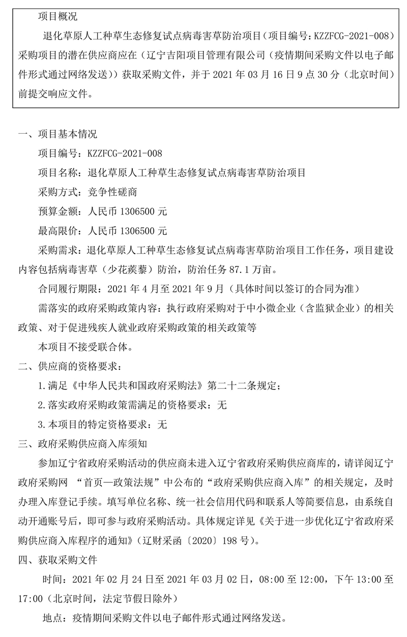 退化草原人工种草生态修复试点病毒害草防治项目的竞争性磋商公告
