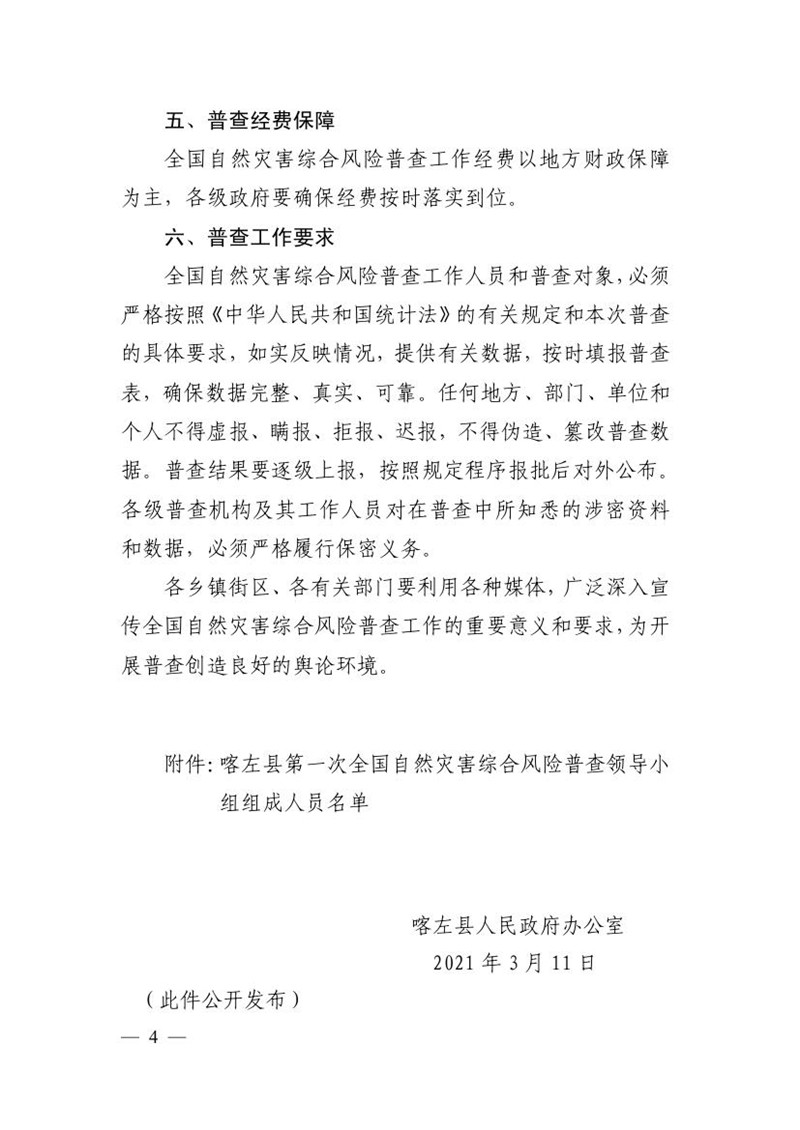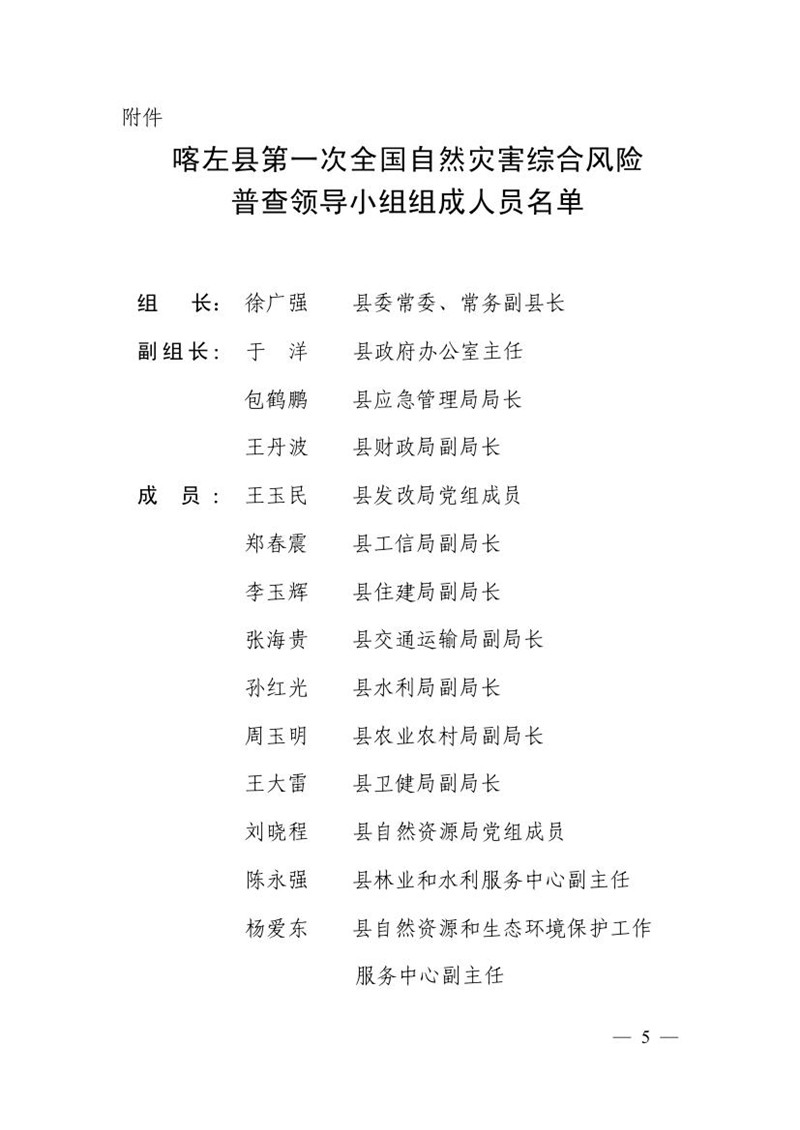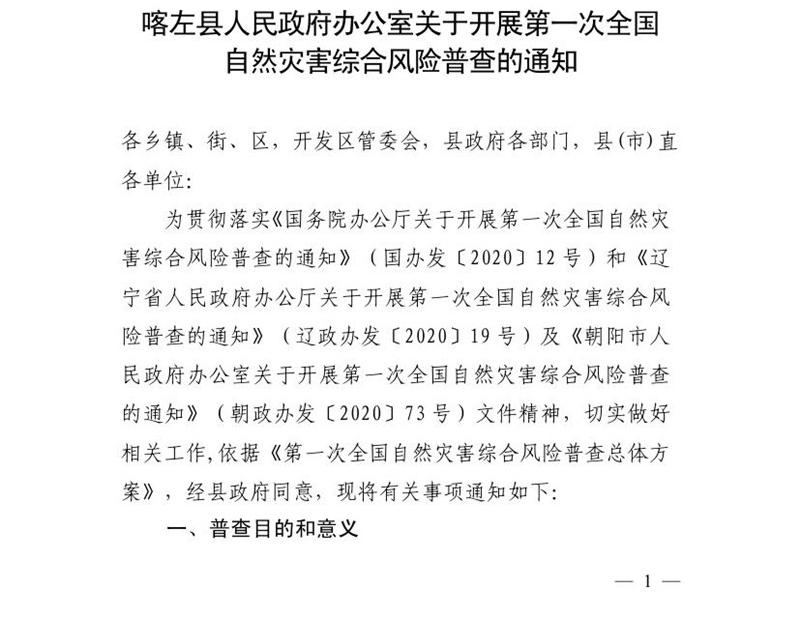 喀左县人民政府办公室关于开展第一次全国自然灾害综合风险普查的通知