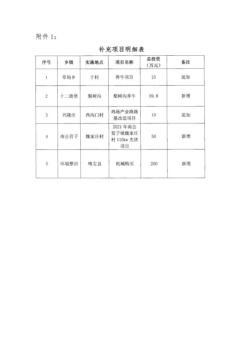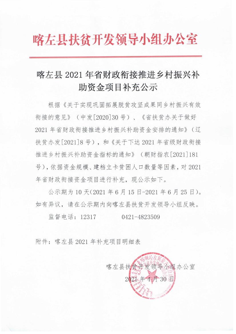 喀左县2021年省财政衔接推进乡村振兴补助资金项目补充公示