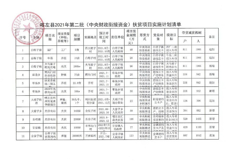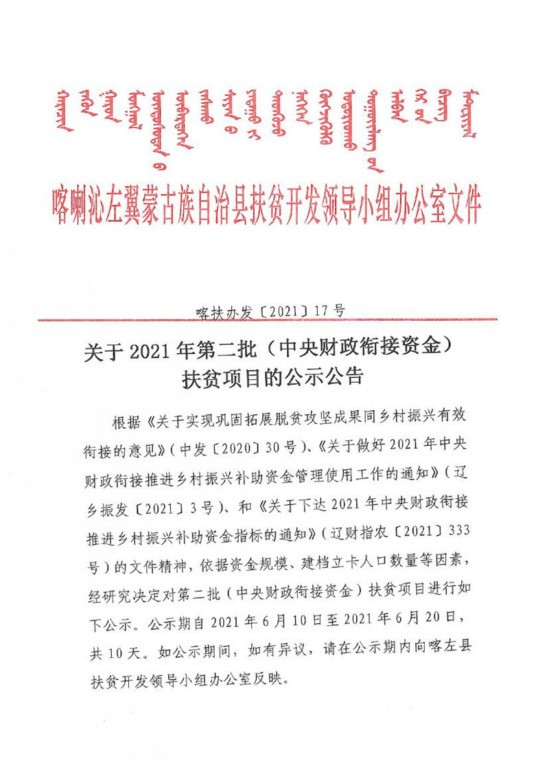 关于2021年第二批(中央财政衔接资金)扶贫项目的公示公告