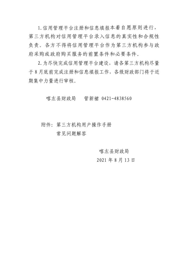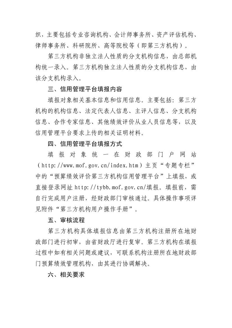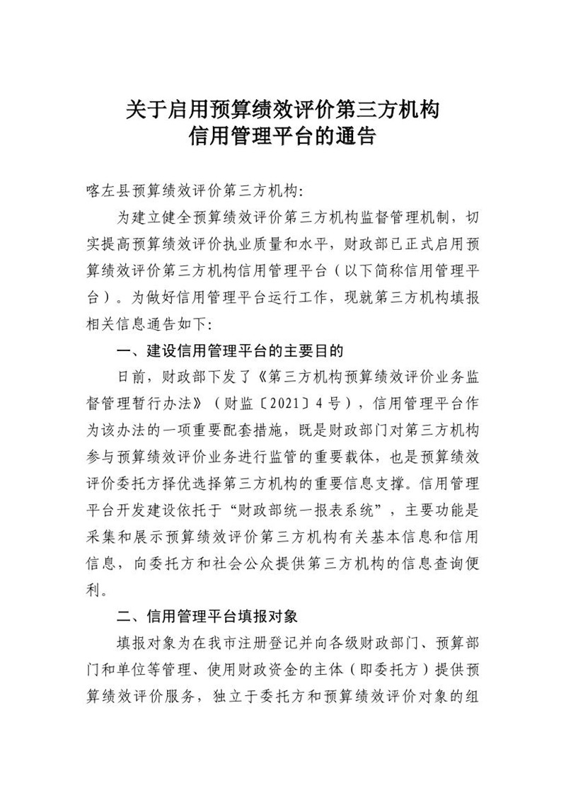关于启用预算绩效评价第三方机构信用管理平台的通告