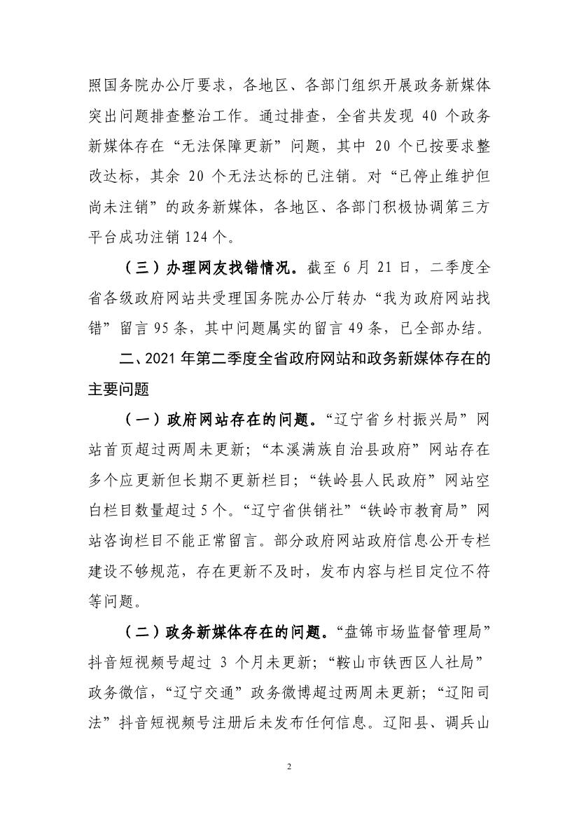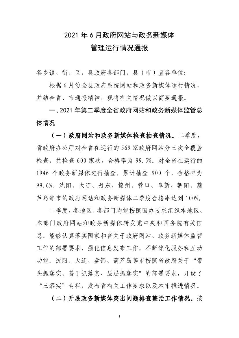 2021年6月政府网站与政务新媒体管理运行情况通报