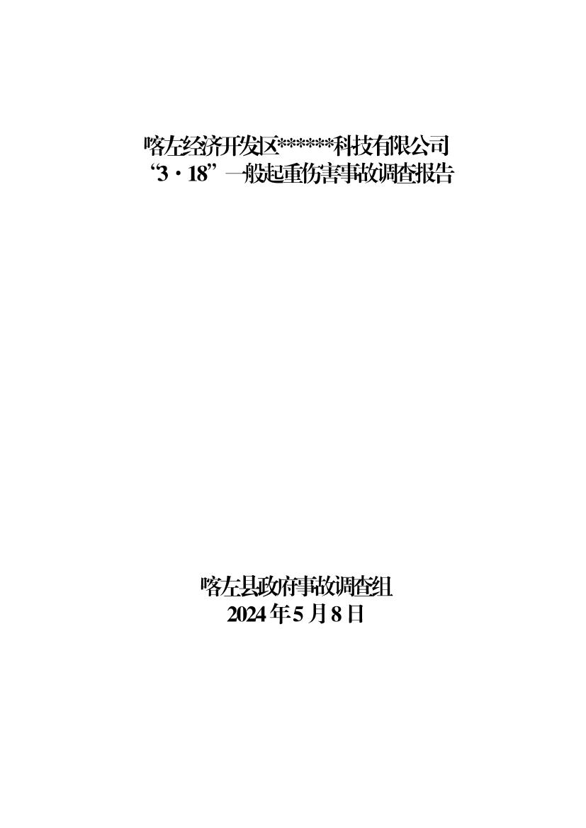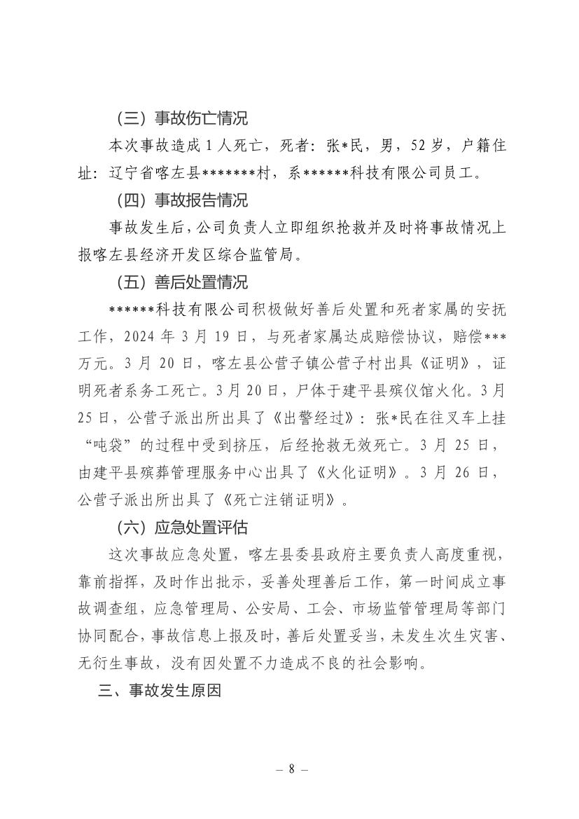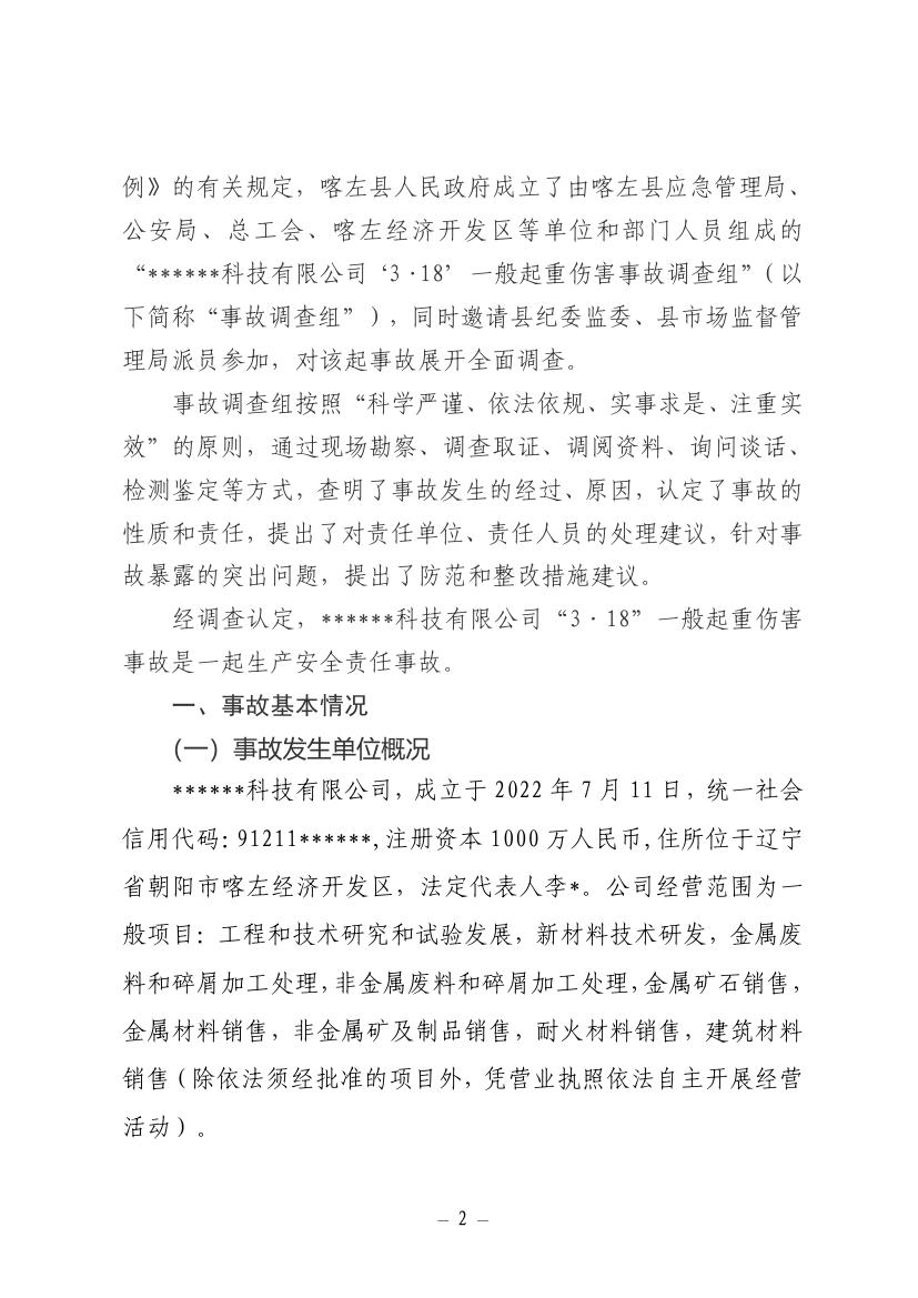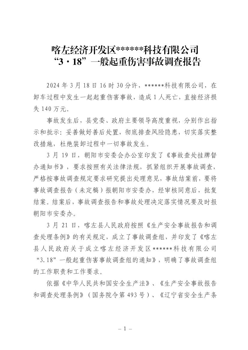 喀左经济开发区******科技有限公司 “3·18”一般起重伤害事故调查报告