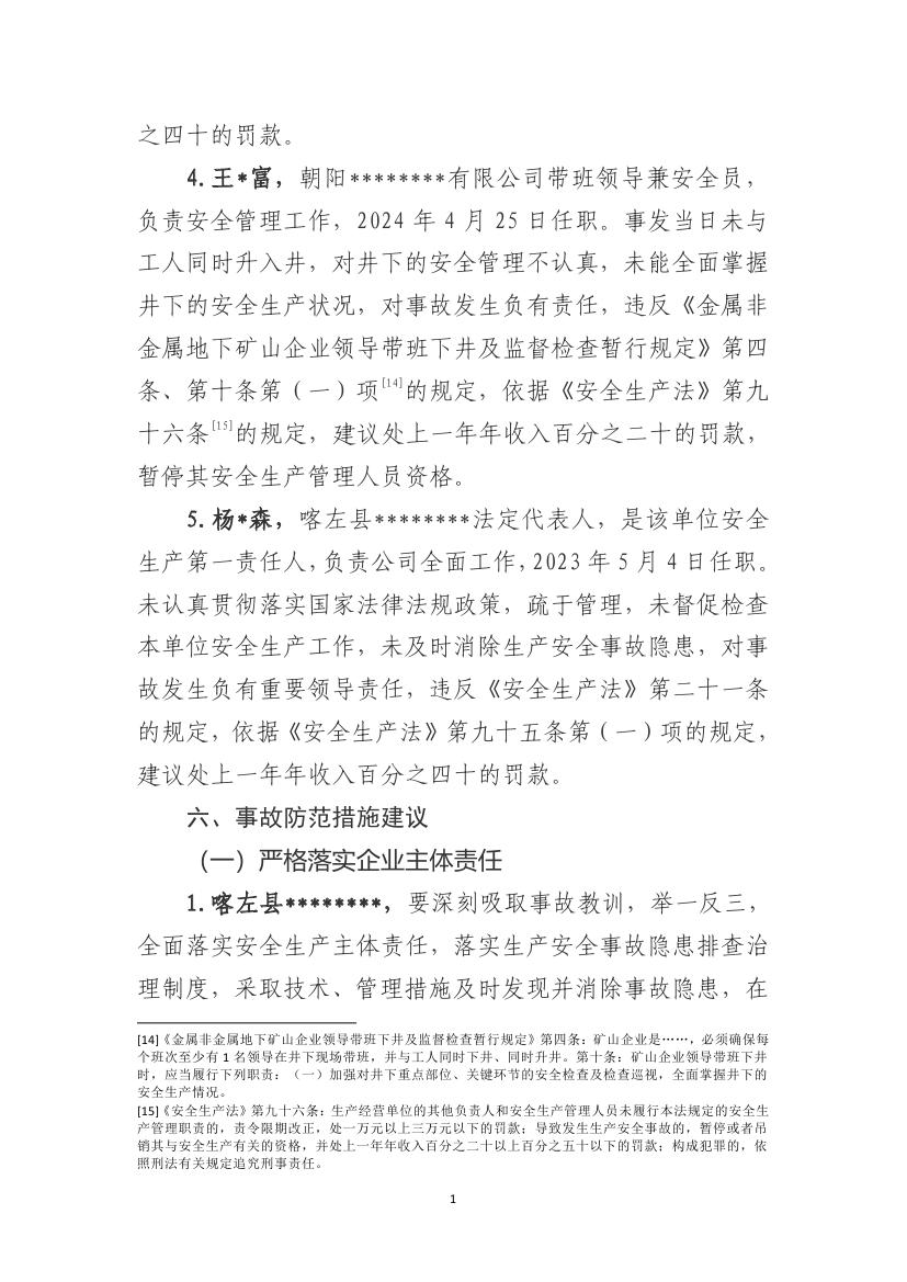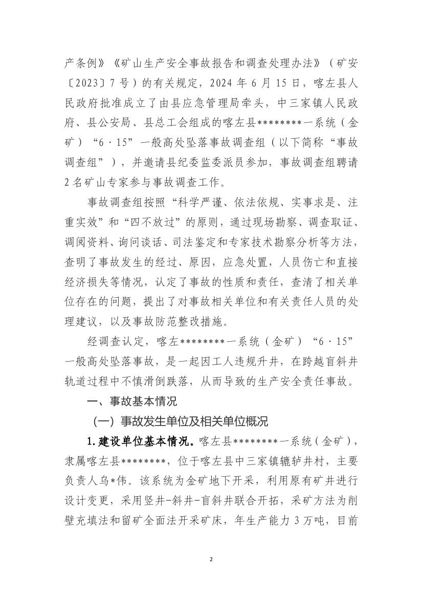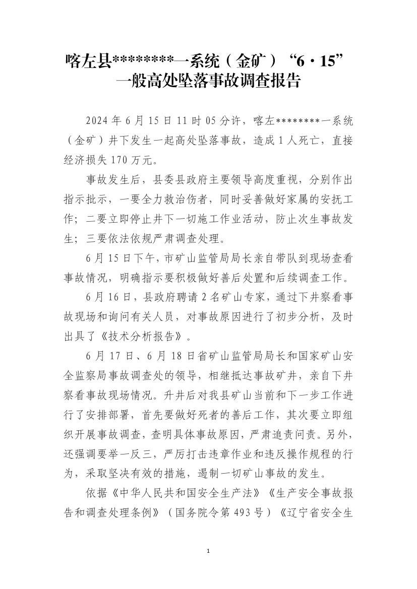 喀左县********一系统(金矿)“6·15”一般高处坠落事故调查报告