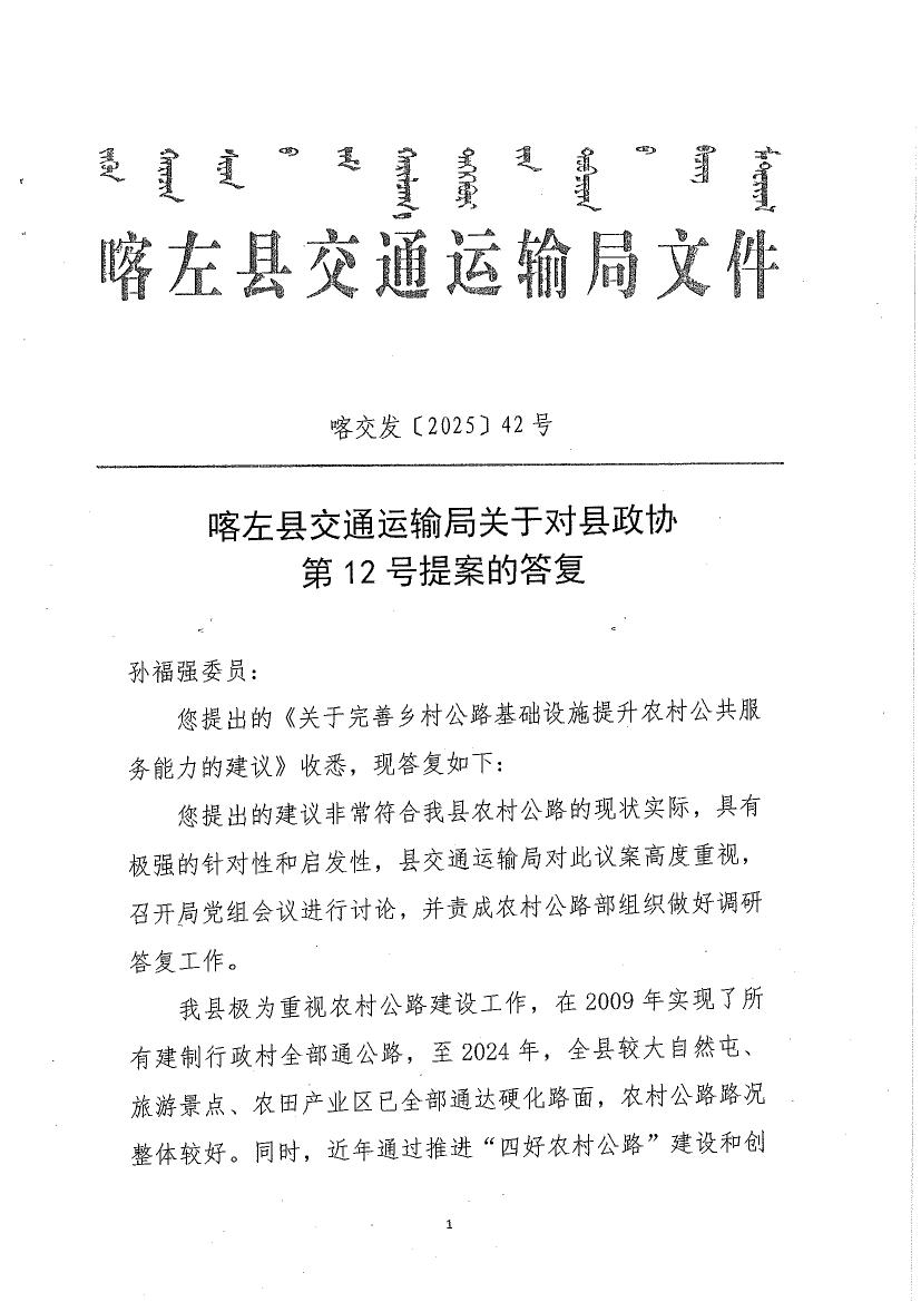 喀左县交通运输局关于对县政协第12号提案的答复