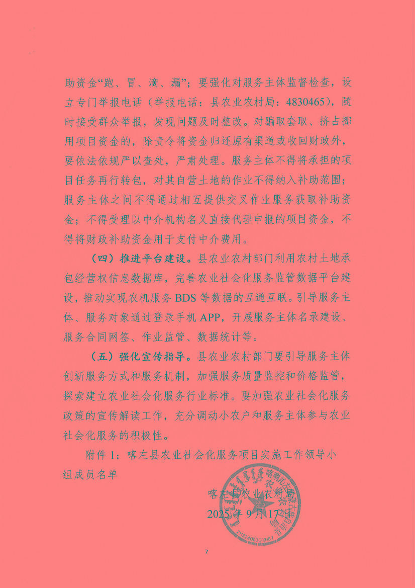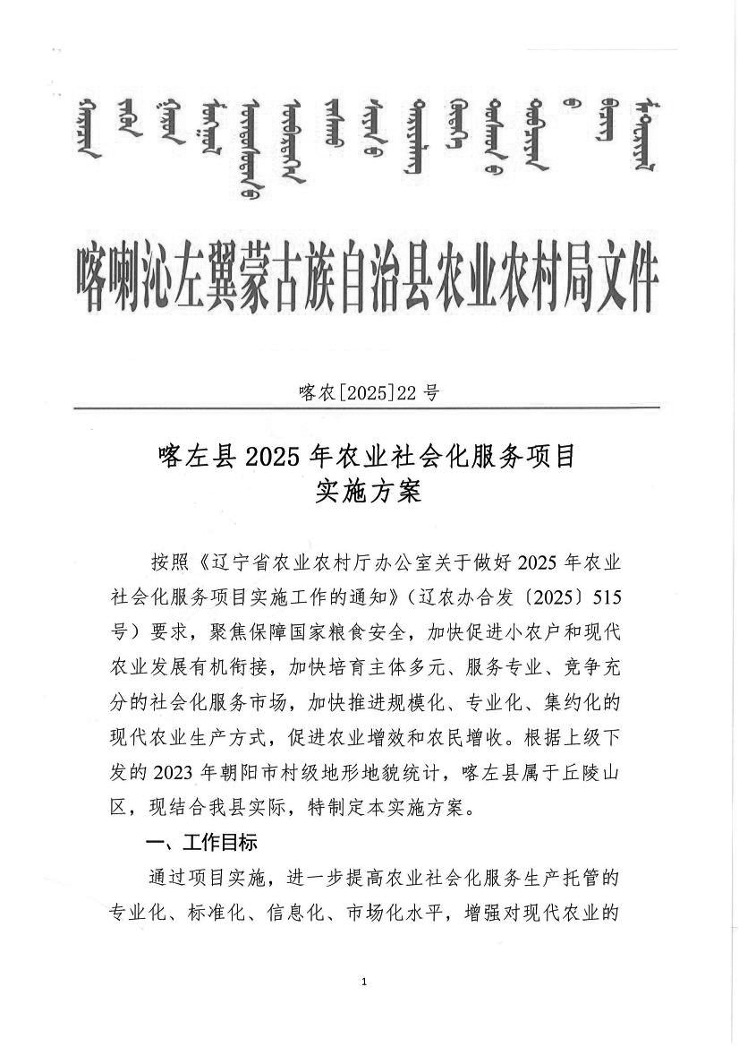 喀农〔2025〕22号 喀左县2025年农业社会化服务项目实施方案